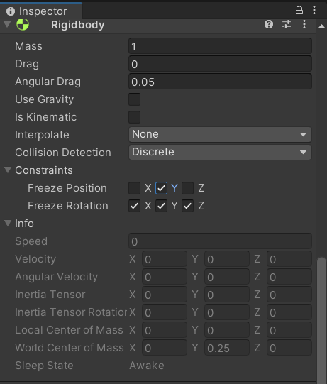 이 문제를 해결하려면 Inspector창 - Rigidbody - Constraints - Freeze Rotation과 Freeze Position을 조정해서 해결할 수 있다.