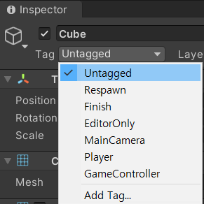 게임 오브젝트에 태그를 넣어 관리할 수 있다.