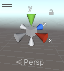 유니티 씬 화면의 우측 상단에 월드 좌표축이 있다.