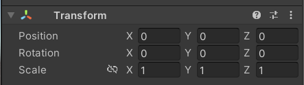 아래는 스케일이 x,y,z로 각 1유닛씩인 트랜스폼이다. ex) 플레이어 크기가 2유닛이면 2m쯤 된다고 생각