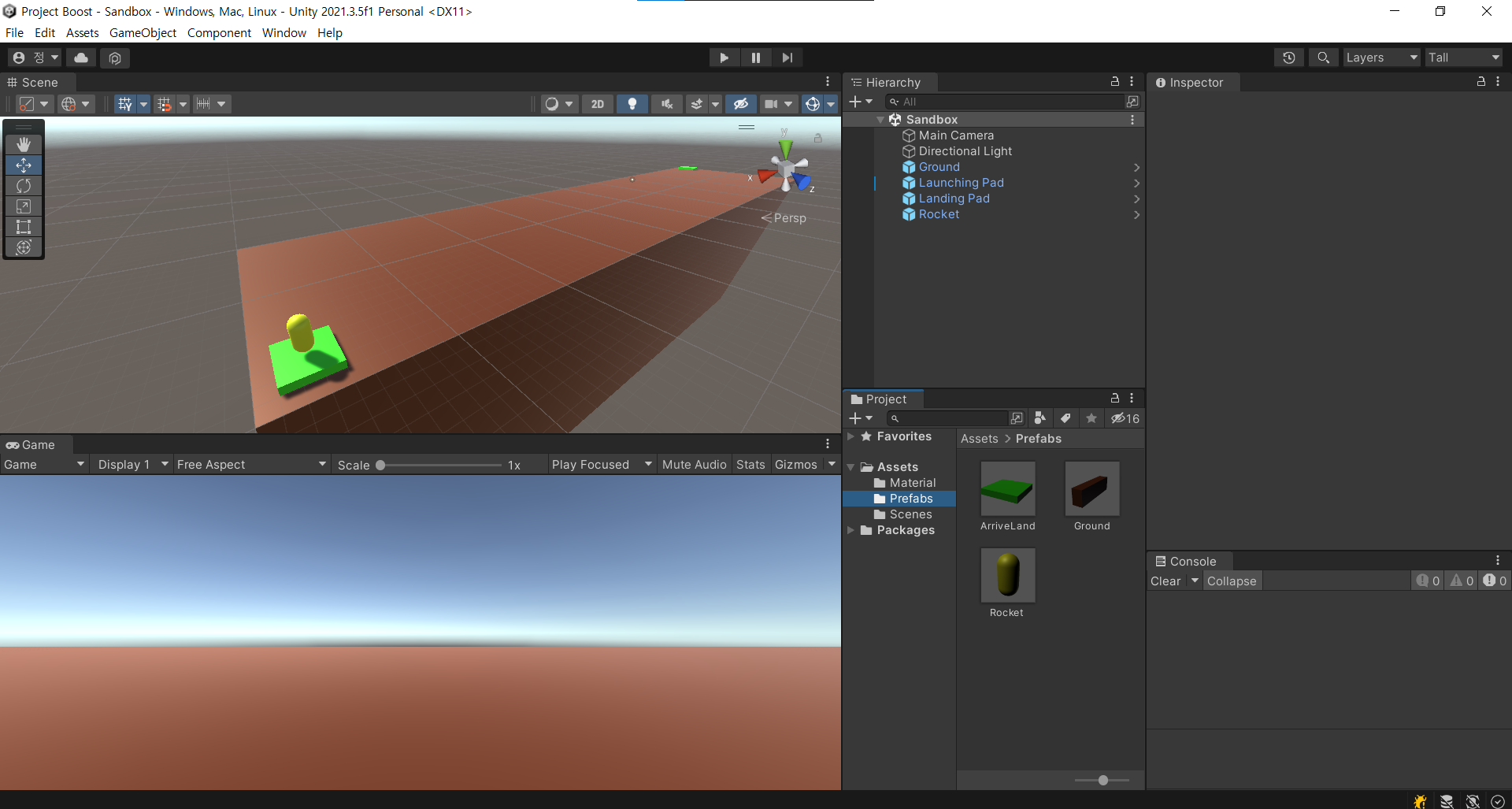간단하게 땅을 만들고, 발사대를 만들고, 로켓과 발사대에 올라갈 착륙대를 만든다.