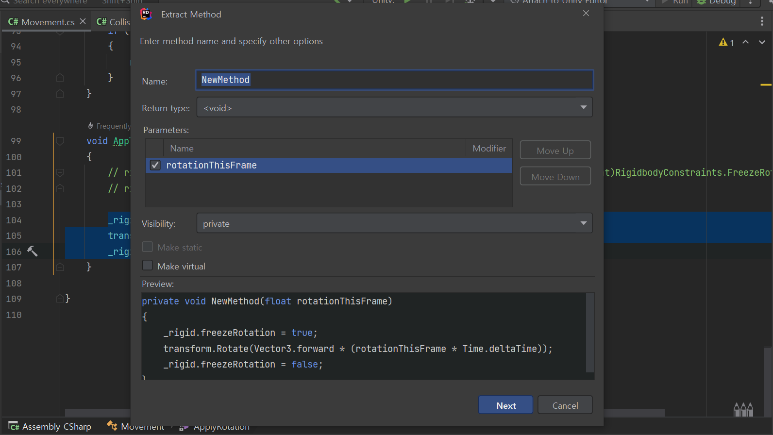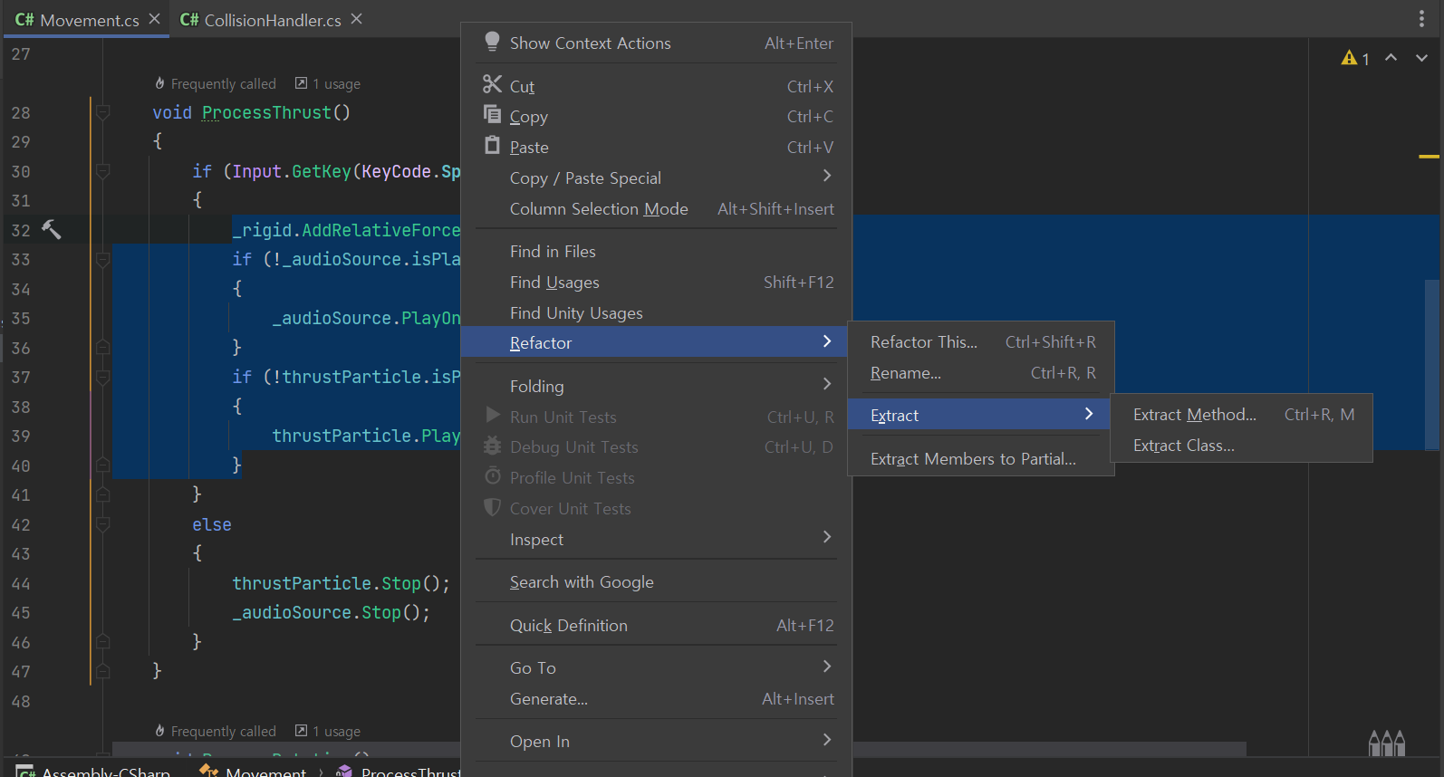 순서를 맞추면 가독성이 높아진다. Update 안에 ProcessThrust, ProcessRotation -> 이후 순서도 ProcessThrust, ProcessRotation