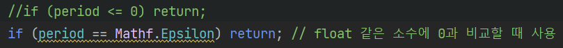 if (period == Mathf.Epsilon) return; // float 같은 소수에 0과 비교할 때 사용
