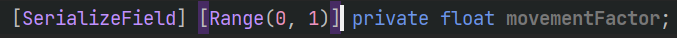 [SerializeField]하고 [Range( , )]를 flaot 값 앞에 붙이면 인스펙터에 슬라이더처럼 생긴다.