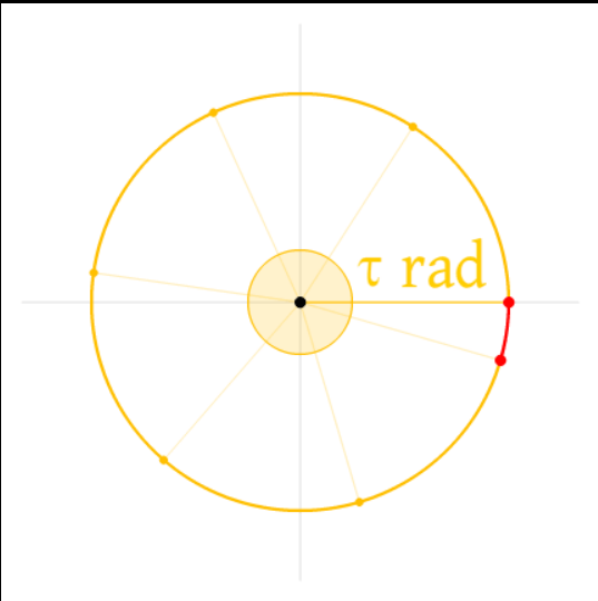 반지름이 1인 원에서 반지름을 길이 1의 호로 나타냈을 때의 각도가 radian이다. 여기서 3.14~~radian이 ㅠ(파이)고 6.28~~radian T(타우)다.