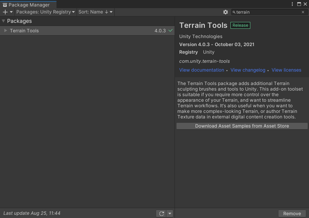 Pakage Manager - Unity Registry - Terrain Tools를 검색하면 다운로드 할 수 있다.