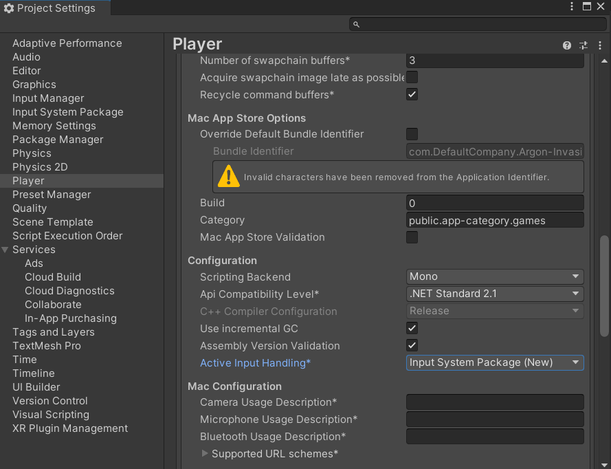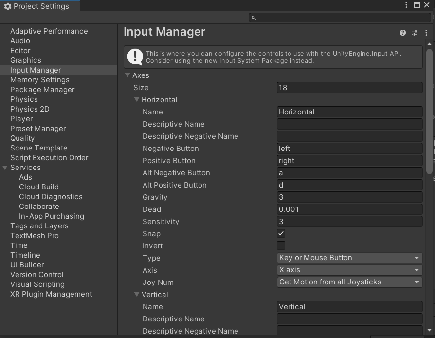 문제가있다면 Edit - Project Settings - Player - Configuration - Active Input Handling의 Input Manager(old)를 선택하면 된다.