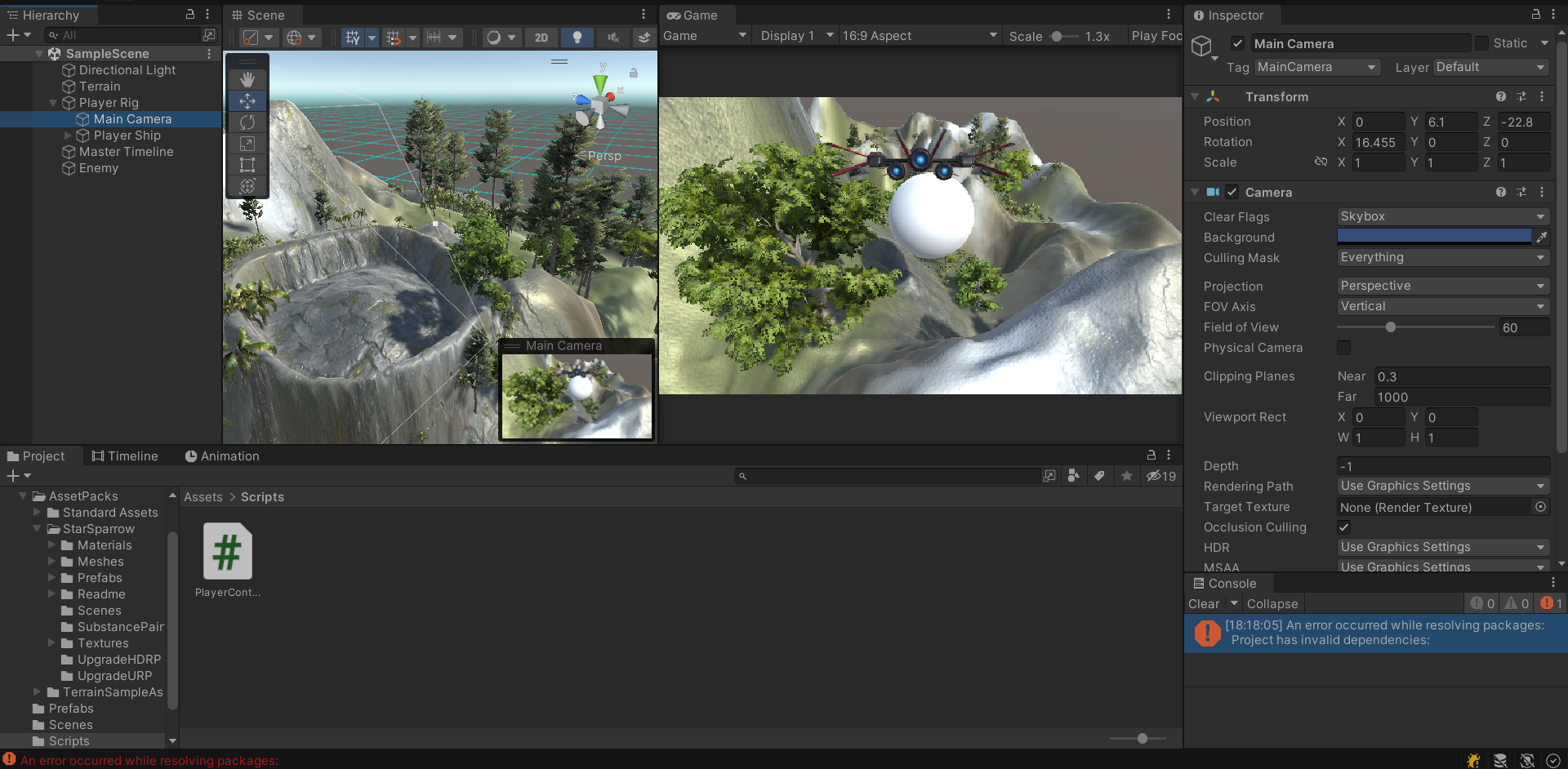 미리 비행선을 이동시켜놓더라도 Clamp가 상대적으로 더하는 게 아니라 Player Ship의 position 값에 제한을 둔 것이어서 대신 카메라를 이동시키는 방식을 선택했다.