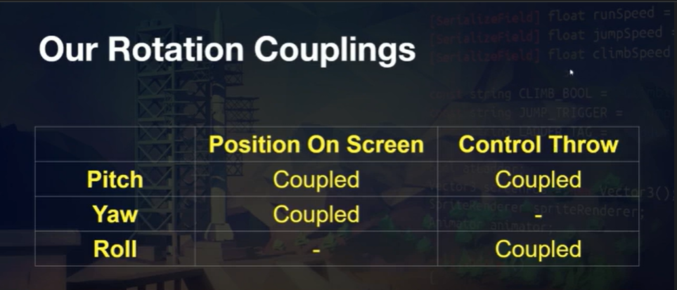 x축 -> 화면 양옆 이동으로 Pitch Rotation이 연동, 컨트롤 할 때 함선 앞쪽의 기울기와 연동