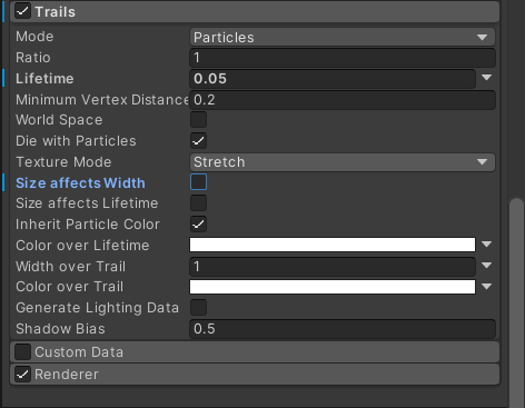 Trails 모듈은 파티클이 지나간 자리에 자국이 남음