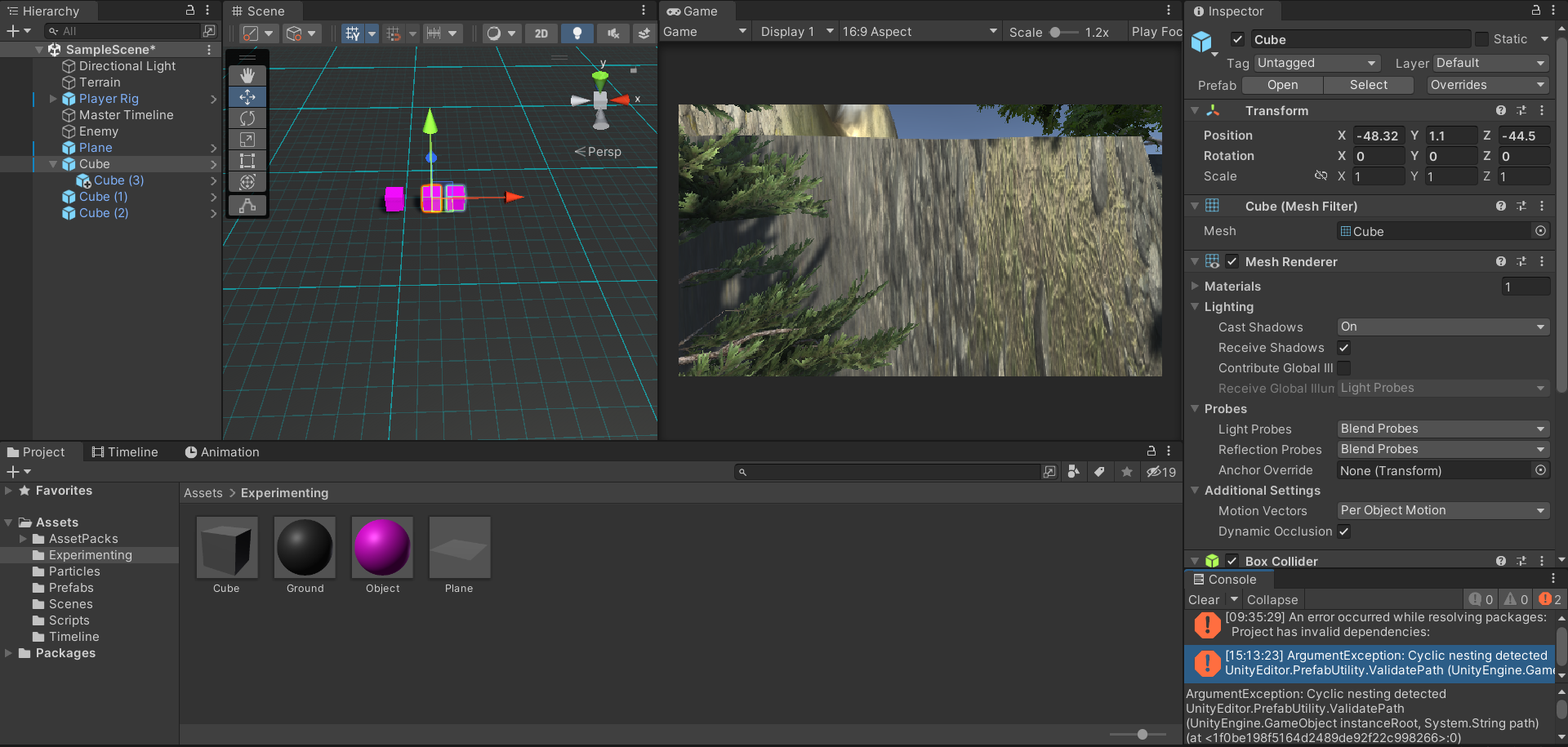 - 인스턴스에서는 가능하지만 프리펩에서 하면 연결점들이 다 고장나서 불가능하게 되어있음 (자기 자신 아래에 자기 자신이 있어야하고 그 아래에 자기자신이 있어야하고.....)