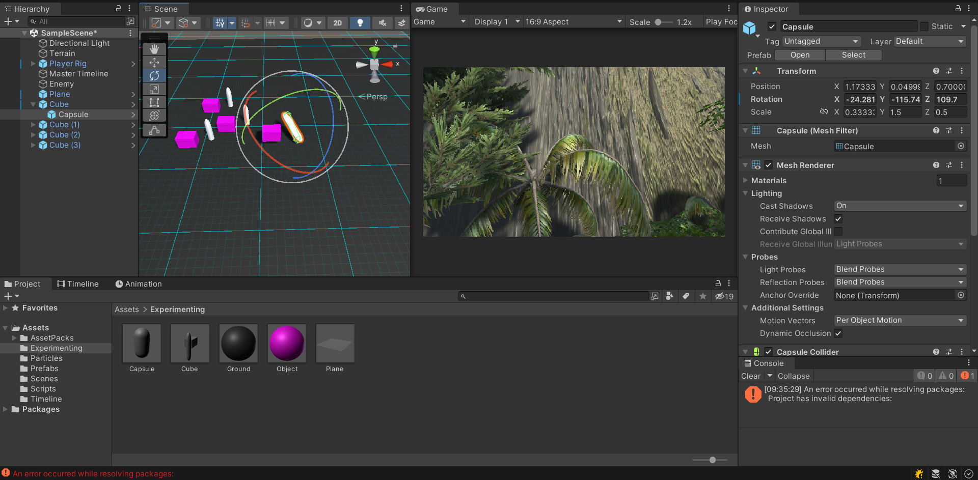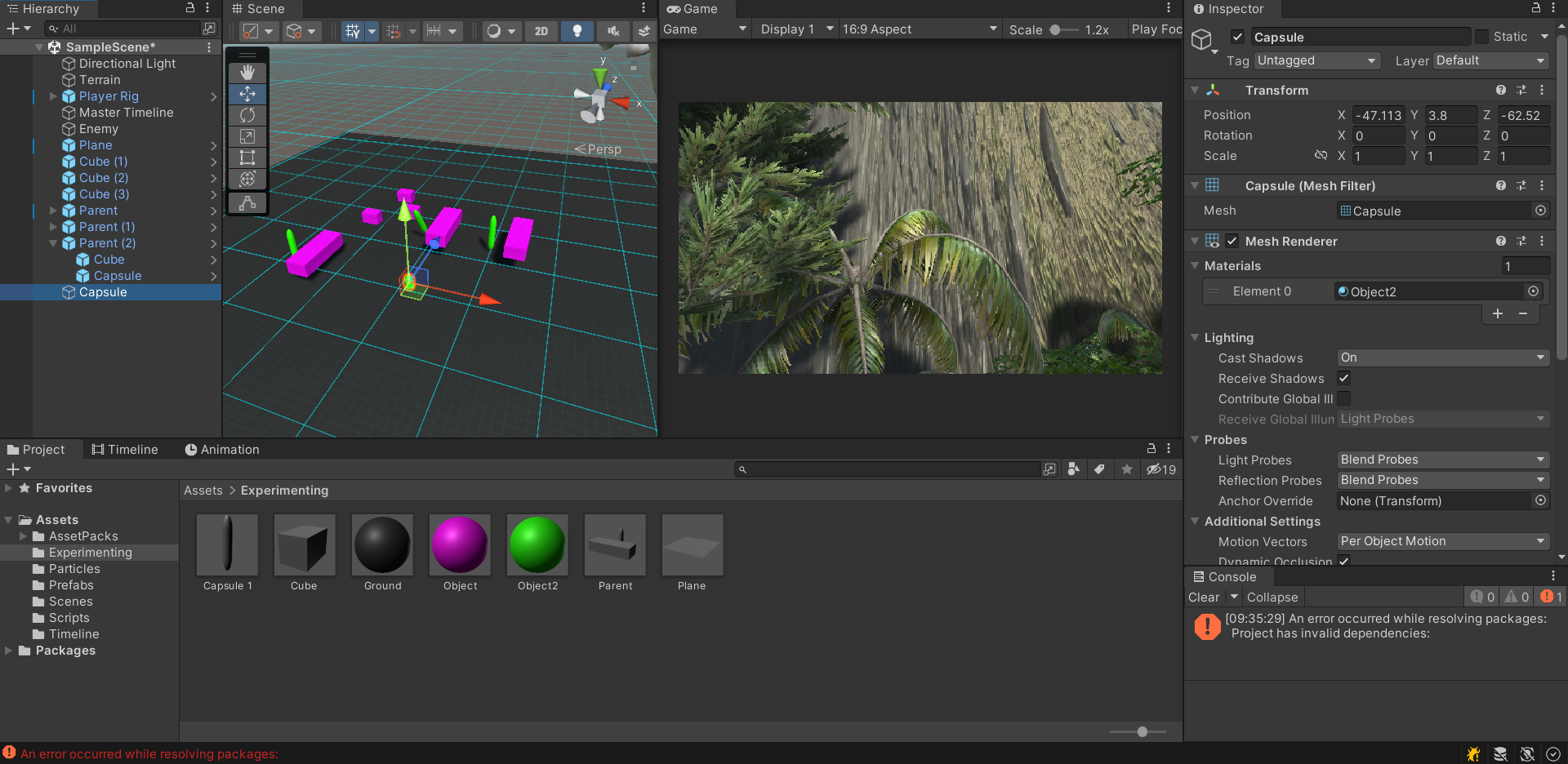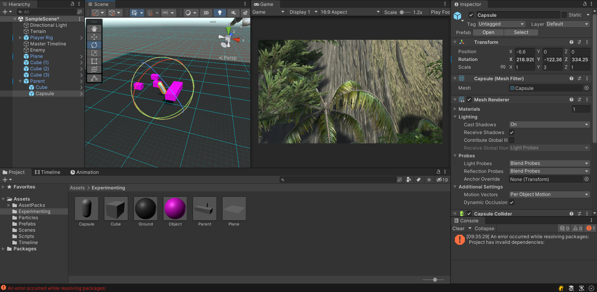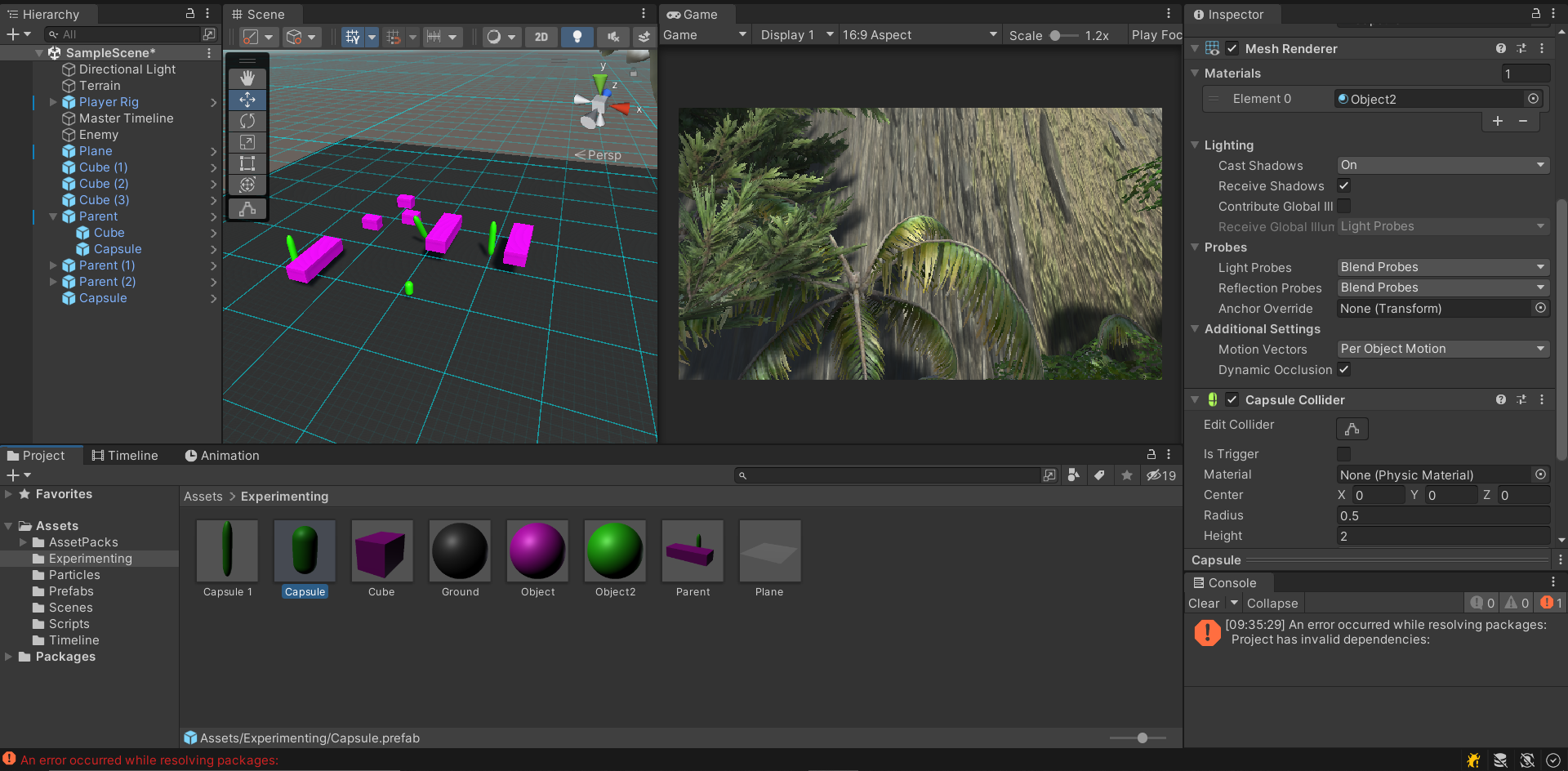 월드에 Empty Object를 생성하여(스케일 1,1,1) 그 자식으로 Cube와 Capsule을 놓으면 된다.