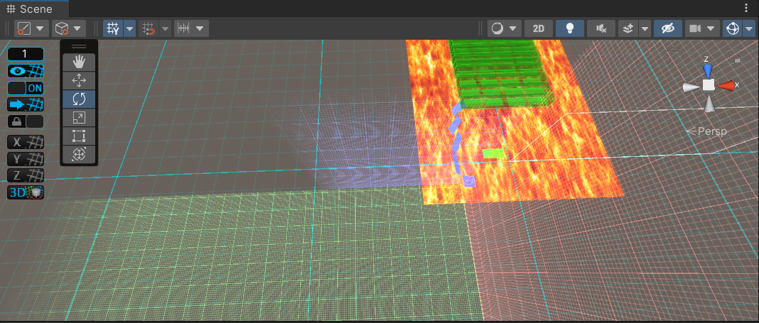 흐르는 듯한 용암은 Texture에 Wrap mode를 repeat로 두고 코드로 Material offset을 움직여서 만들었다.