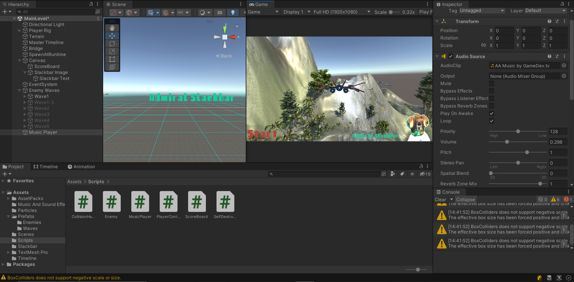 배경음악을 Play On Awake와 Loop를 키고