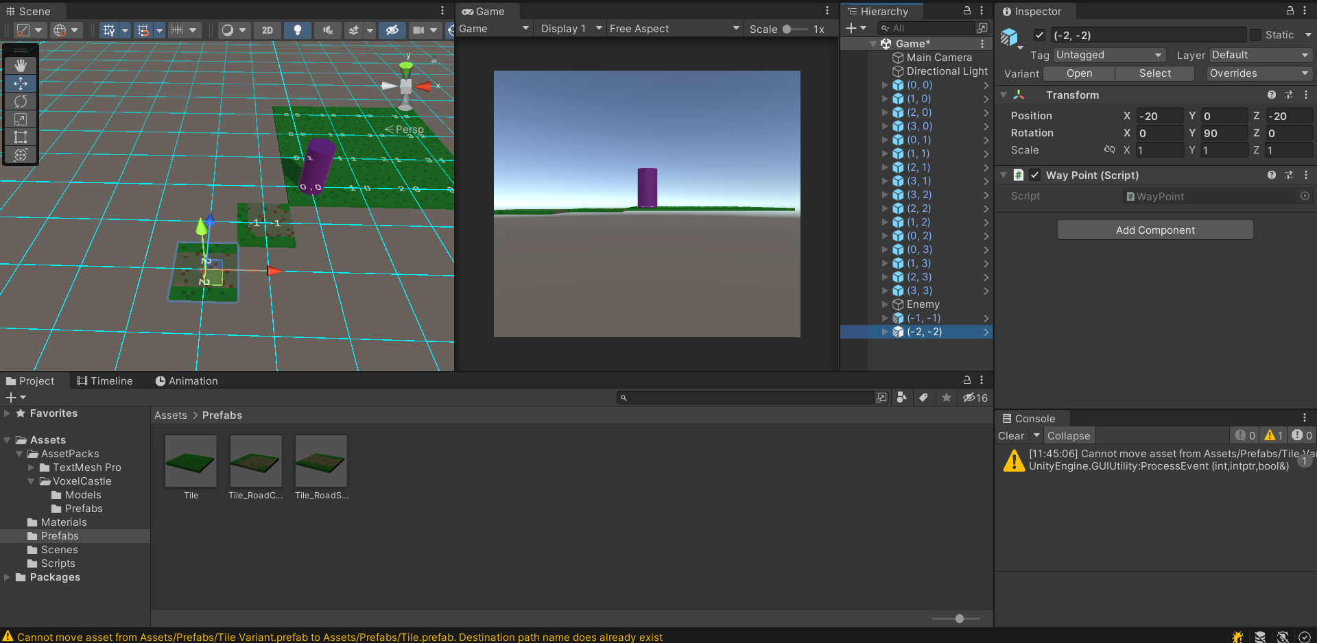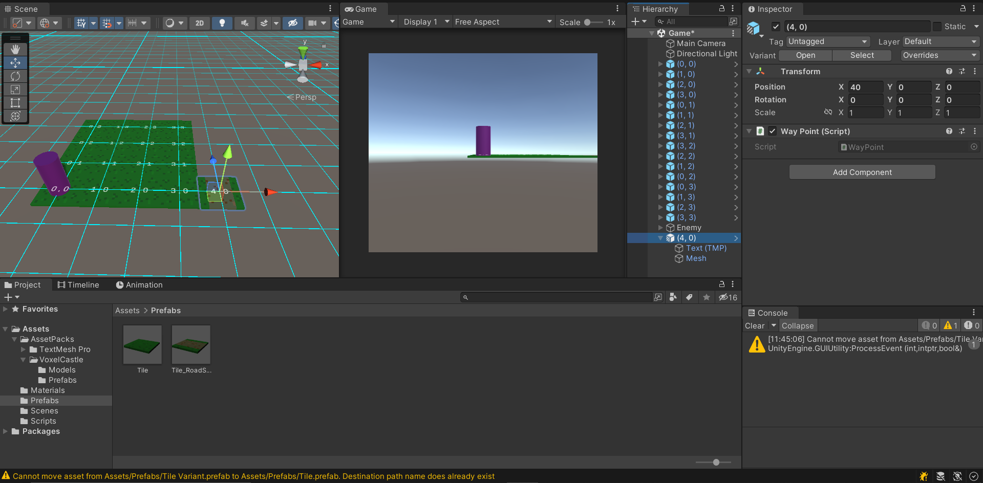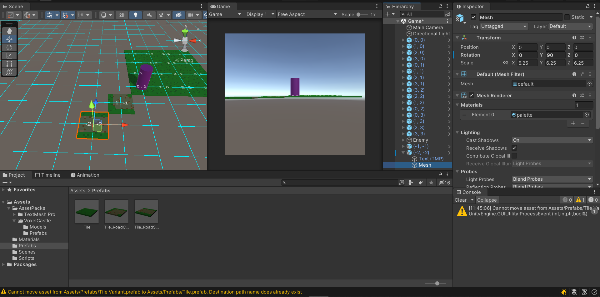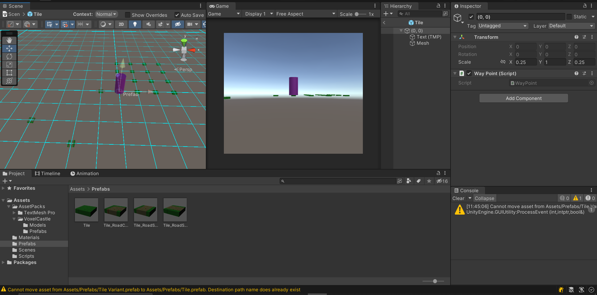 Tile 프리펩을 수정하면 Tile 프리펩의 Variant인 Tile_RoadStraight도 변경사항이 적용되게 된다.(둘은 연결되어 있음)