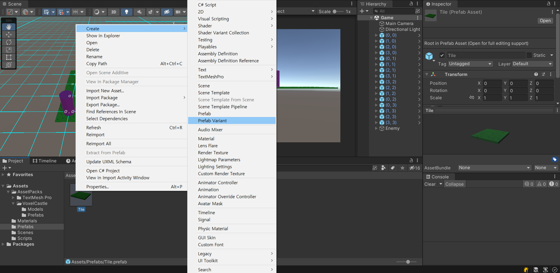 이 상황에서 Tile 프리펩을 변경해도 Prefab Variant와 Prefab Variant의 Variant는 변경되지 않는데
