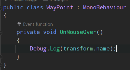 * 해당 개체에 콜라이더가 없는 CoordinateLabel(자식 오브젝트 Text의 스크립트)에서 OnMouseButton에서 사용한다면 문제가 생길 것이다.