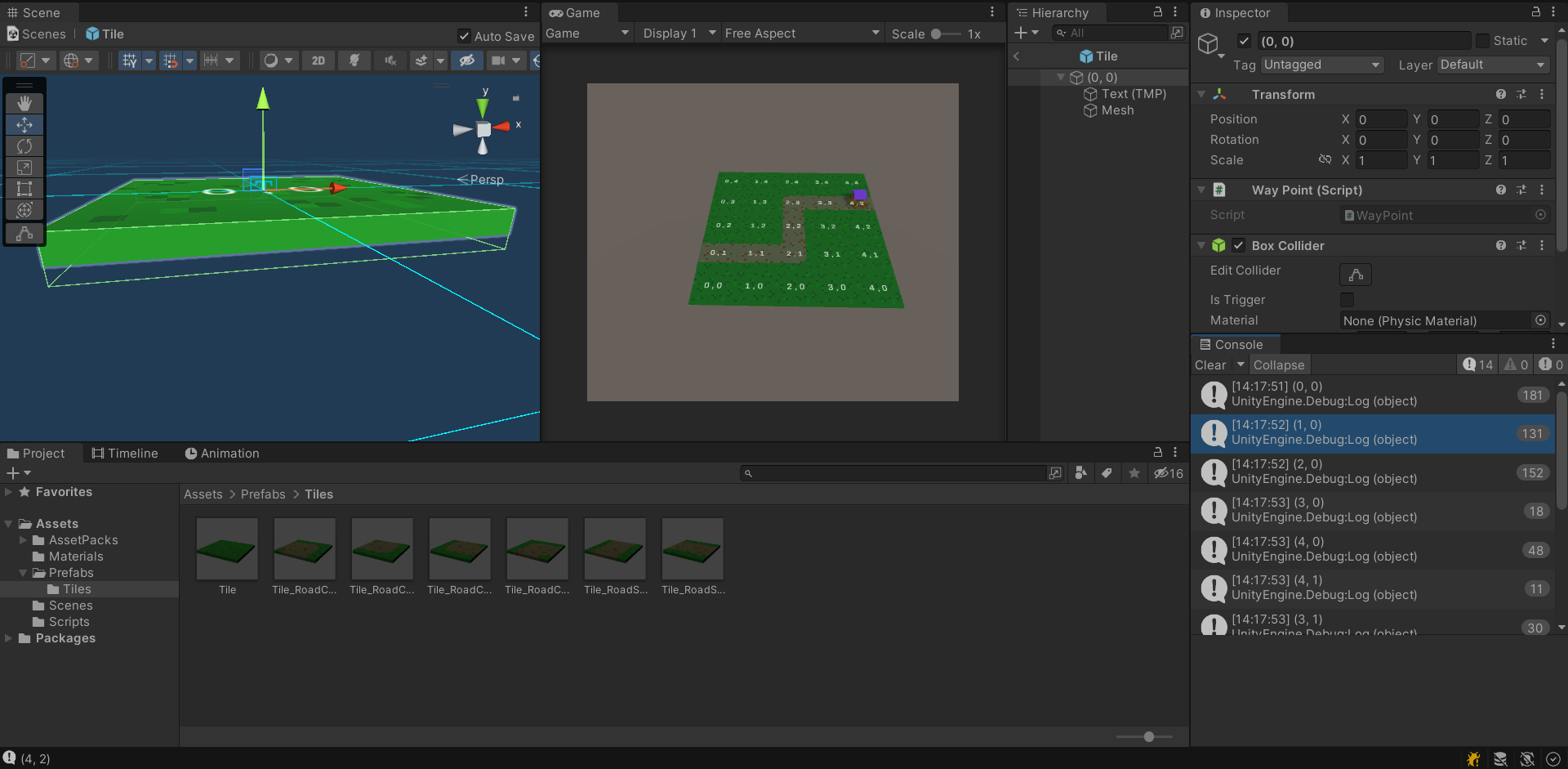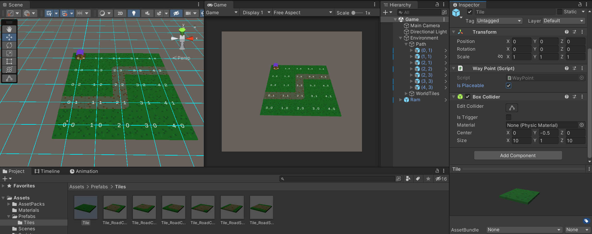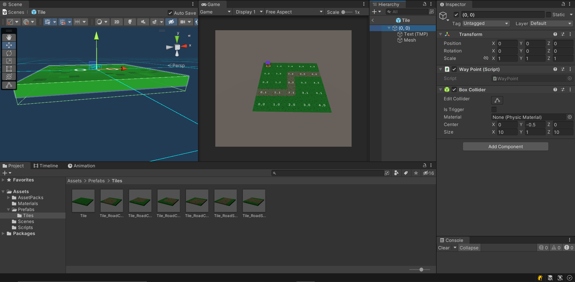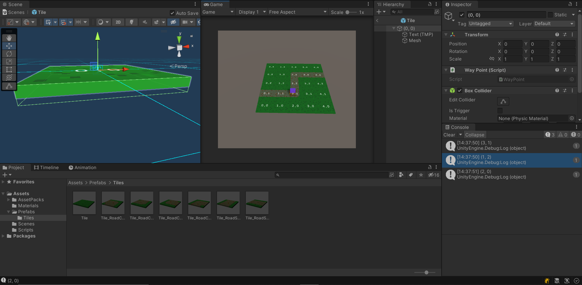 마우스 입력을 탐지하기 위한 Collider를 Tile 프리펩에 추가해준다.