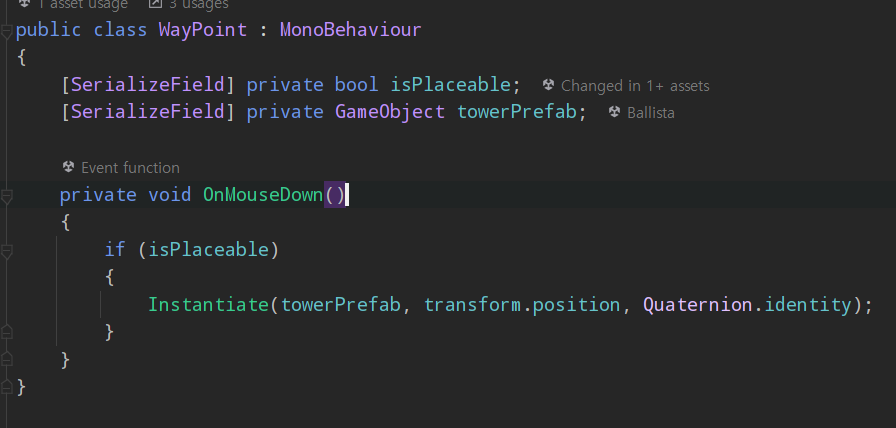 WayPoint에서 개체를 이미 마우스 입력으로 추적하고 있기 때문에 WayPoint에서 타워 설치를 작성 한다.