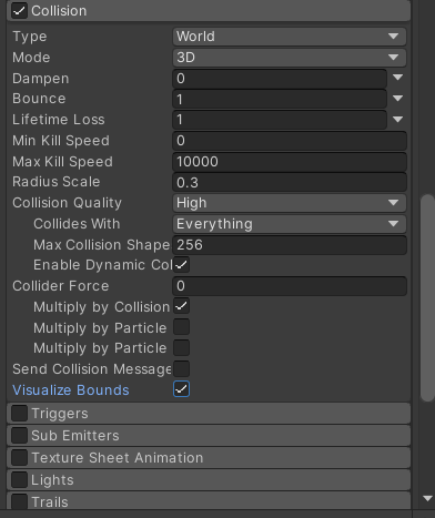 Collision을 켜주고 Lifetime Loss를 1로 만든다 - 이것은 충돌시 Lifetime과 관련있다.(0~1 / 1로갈수록 바로 사라짐)