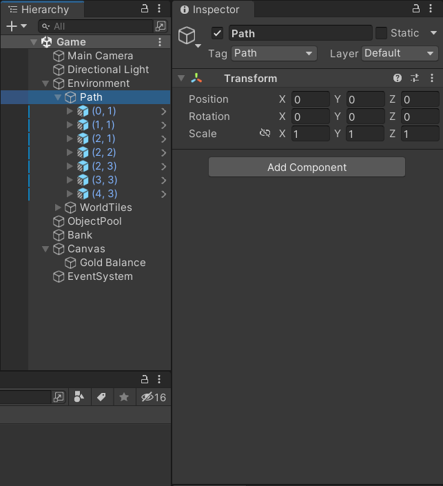 경로를 문자열로 체크해 배열에 넣는 방법은 씬의 태그 객체를 찾을 때 계층에서 명시한 순서대로 되지 않을 수 있다. (경로 순서) => 무작위로 움직일 수도 있다.