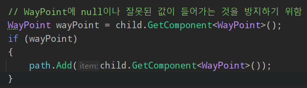 이후 WayPoint에 잘못된 값이 들어가는 것을 방지하기 위해 조건을 걸어준다.