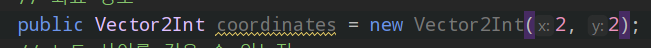 순수 C# 클래스에는 생성자 사용이 가능한데 Vector2Int에 new를 사용해서 매개변수로 초기화를 시켜주듯이 생성자도 new처럼 초기화를 할 수 있다.