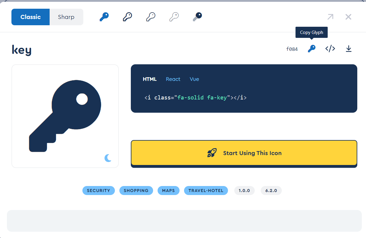 우측 상단의 두번째 Copy Glyph를 클릭해서 복사한 뒤