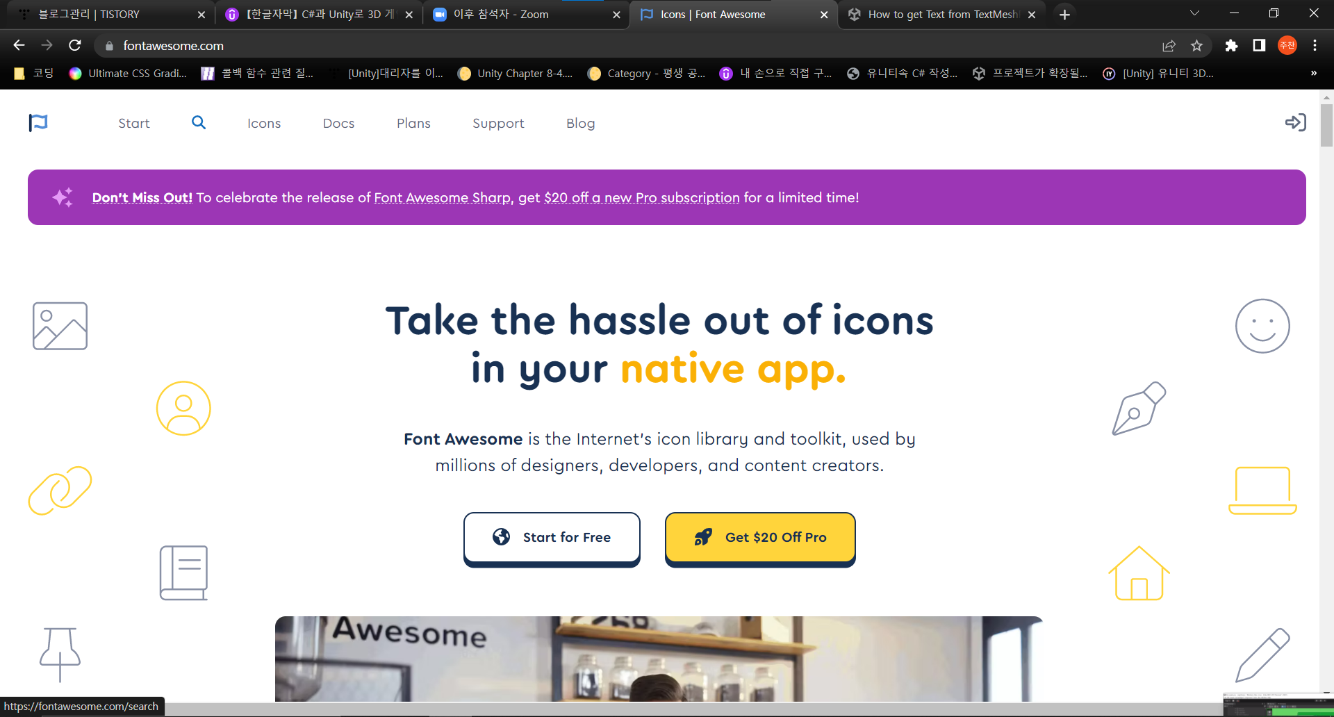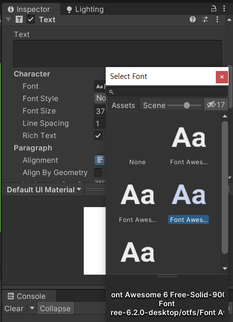 Font Awsome라는 사이트에서 이미지를 받아 유니티의 Text(Lagacy)에 사용할 수 있다는 것을 배웠다.