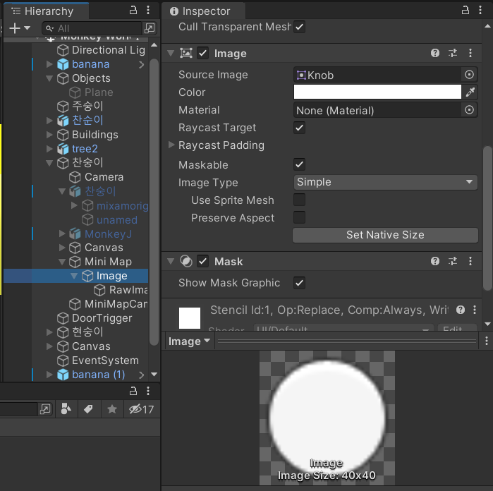 Canvas와 Image를 만들고 이미지를 적절한 위치에 이동시킨 후 마스크 컴포넌트를 붙인다.