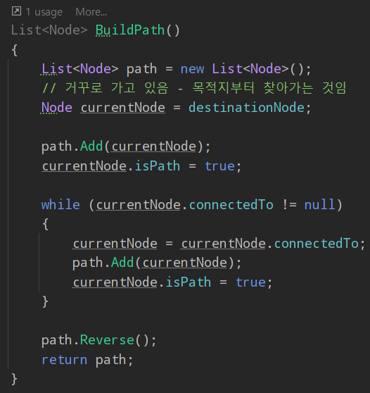목적지부터의 리스트를 뒤집어서 시작점부터 정렬되게 한다.