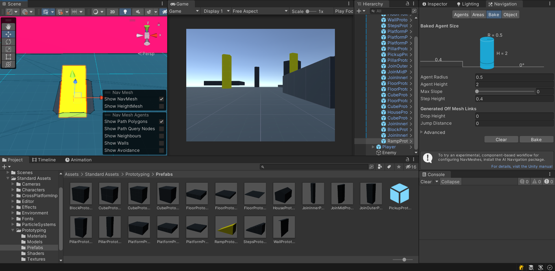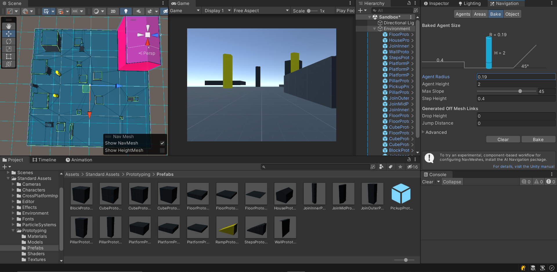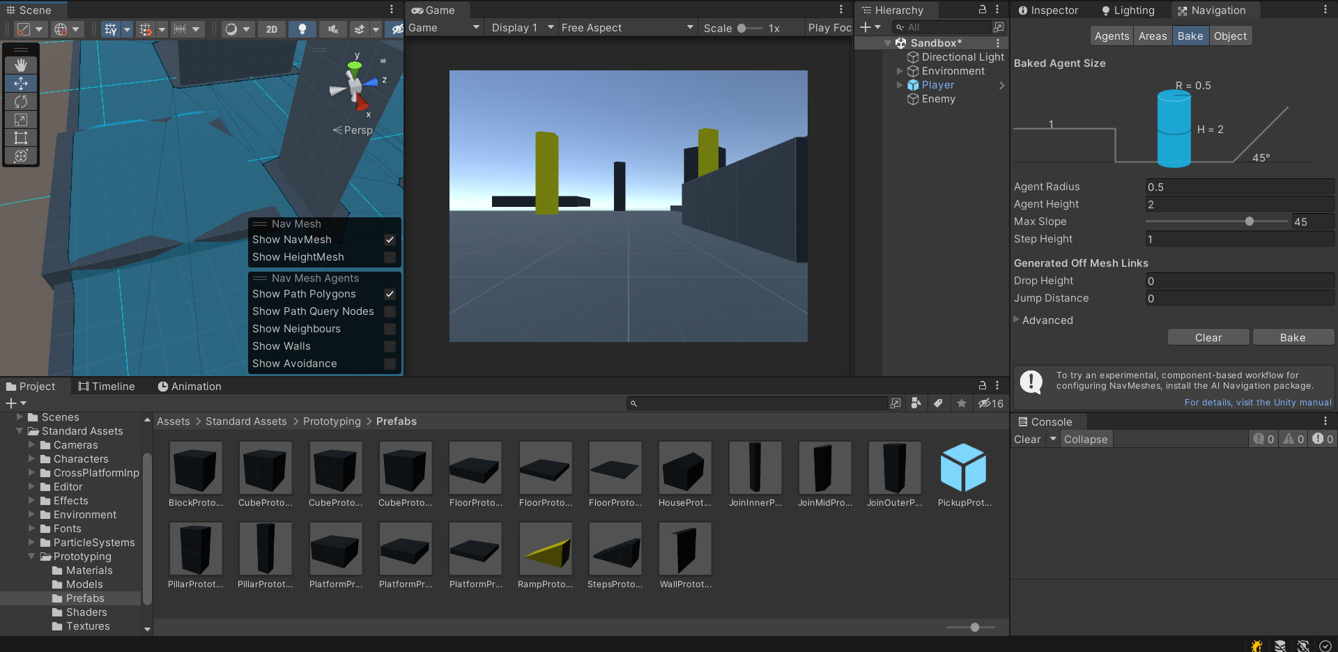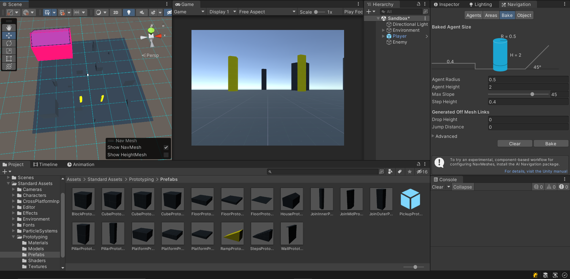 Bake 버튼을 눌러보면 특정한 것에만 적용이 되는데 NavMesh는 정적 객체에만 적용될 수 있어서 그렇다.