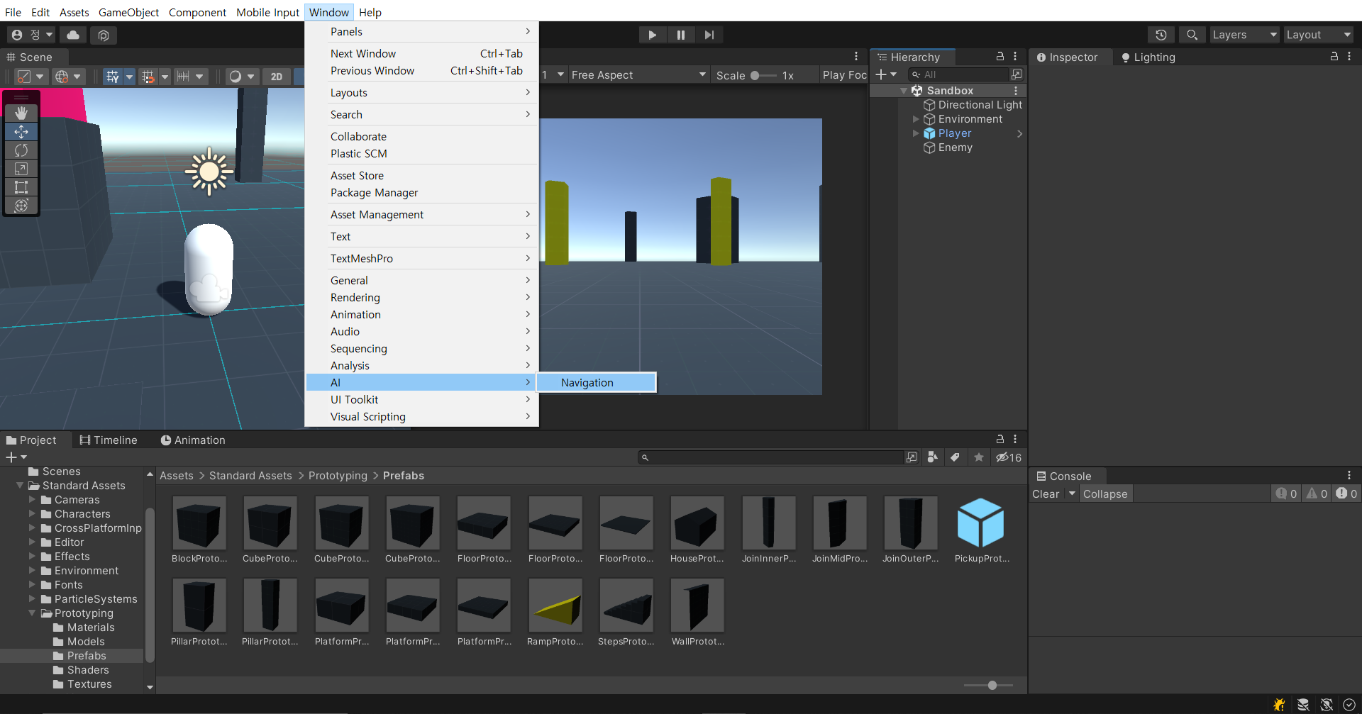 * 파란색 부분 - NavMesh (NavMeshAgent가 갈 수 있는 곳)