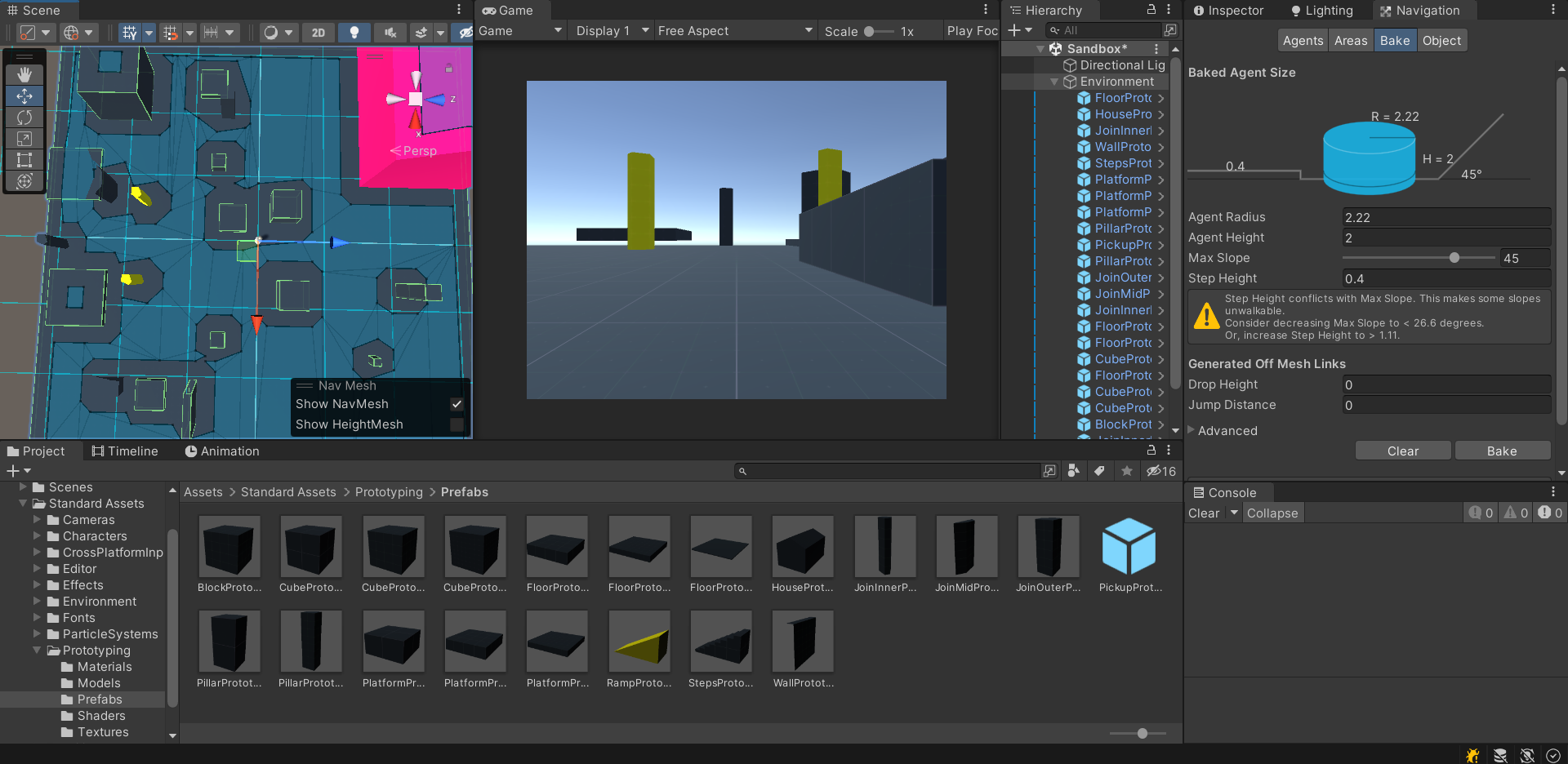 여기서 NavMesh간의 사이에 틈이 생겨 Agent들이 올라가거나 내려올 수 없는 경우가 생긴다.