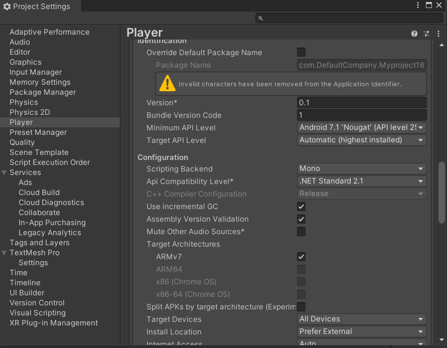 Project Settings - Player - Other Settings에서 Minimum API Level을 조정하면 되는데