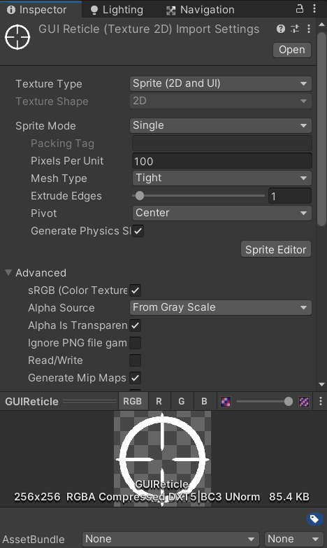 이후 Texture에셋에서 Type을 Sprite로 하고 Alpha Source를 From Gray Scale, Alpha Is Transparent로 하였다.