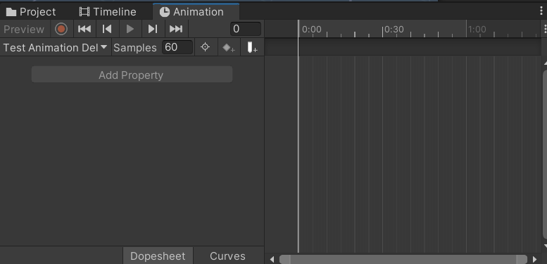 이후 생성한 애니메이션을 더블클릭하면 애니메이션 창이 뜬다.