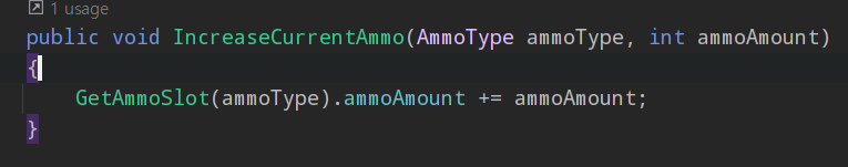 트리거에 닿았을 때 플레이어면 Ammo에 접근해 IncreaseCurrentAmmo를 호출하여 자신은 파괴하고 해당 타입의 총알 개수를 늘린다.