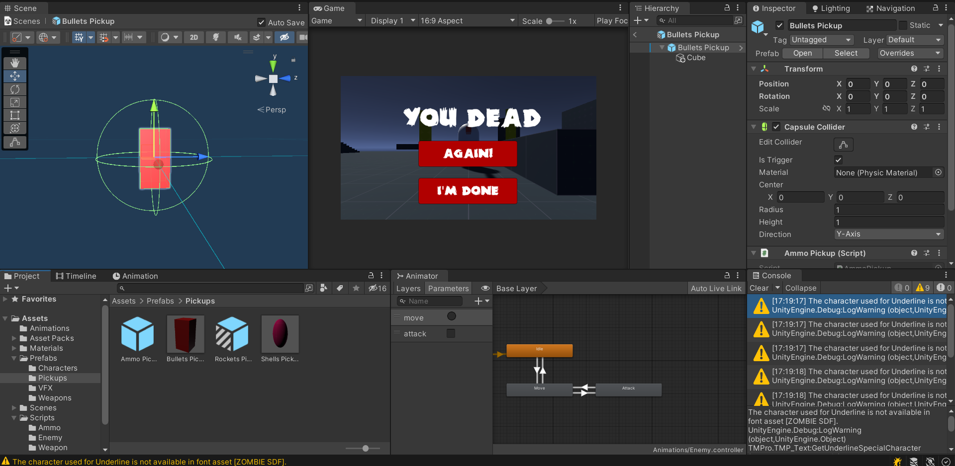 여기서 할 수 있는 건 원래는 탄약을 개봉하고 그곳에서 탄약을 집어 들고 변경하는 것 밖에 없다. => 모든 Prefab Variant 변경