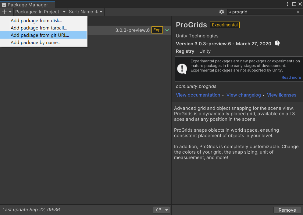 com.unity.progrids로 다운받으면
