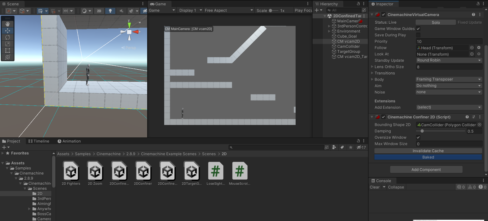 Cinemachine Confiner로 카메라가 찍을 수 있는 영역을 정해줄 수 있다.(바깥으로 나가지 않도록 해줌)