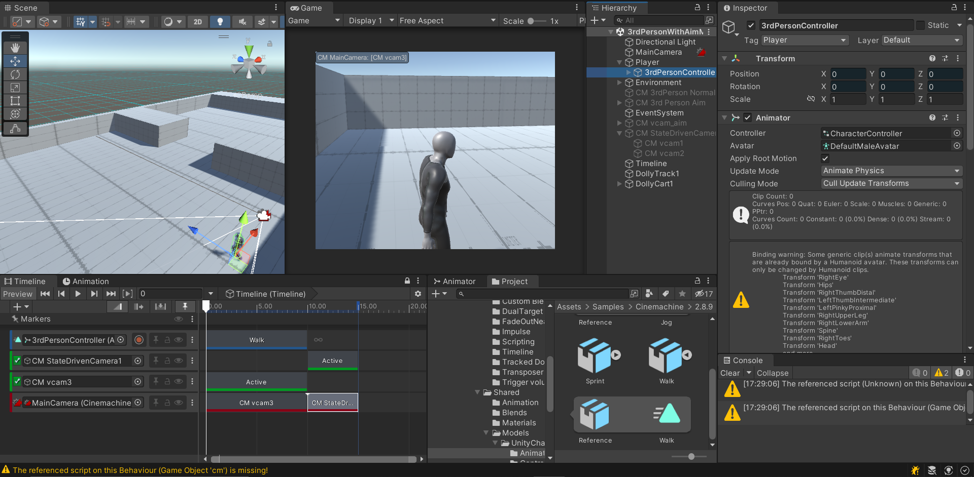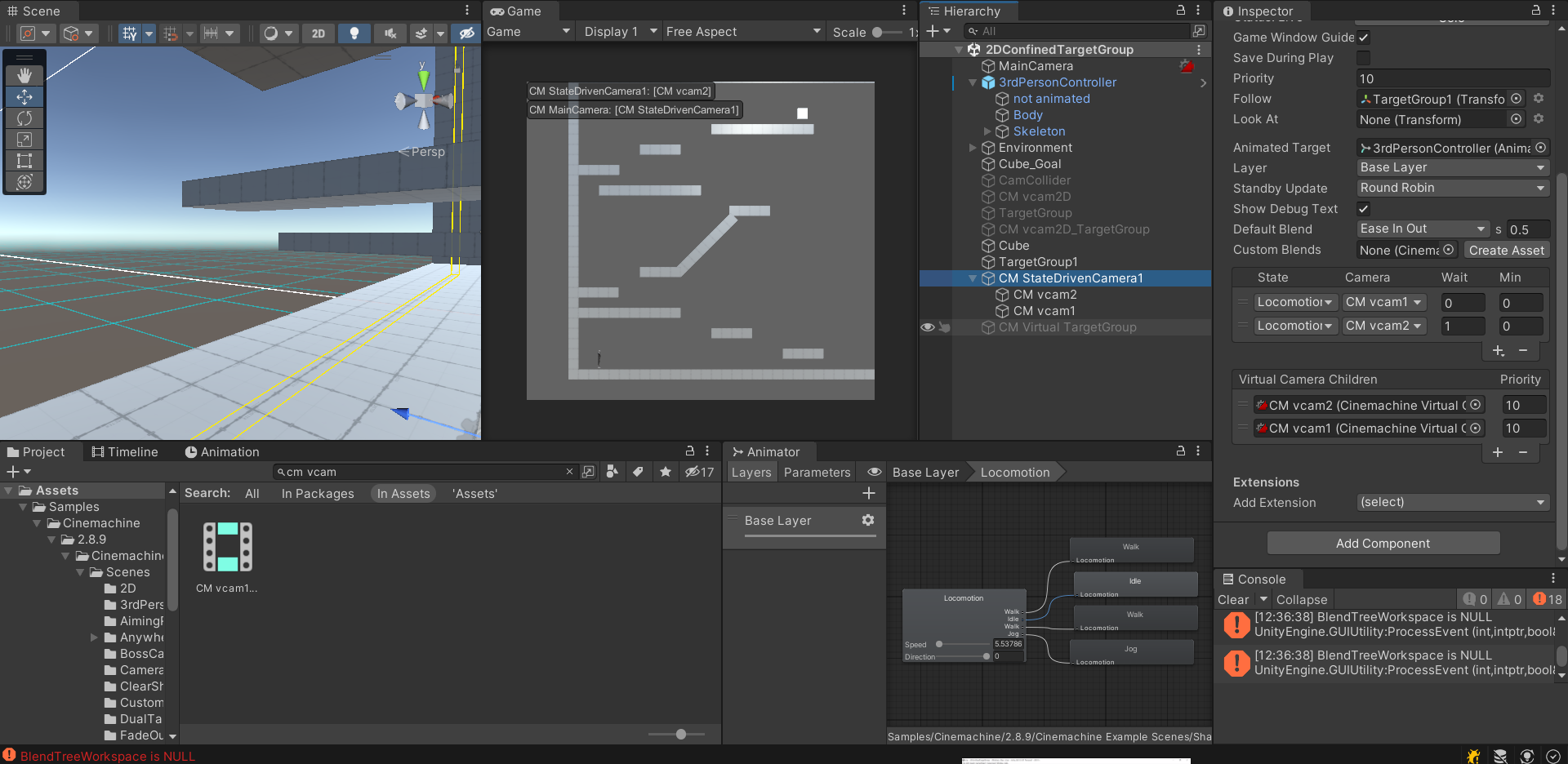 State(애니메이션 상태)와 Camera(동작할 가상 카메라)를 선택한 뒤 Wait나 Blend의 s를 조정하여 카메라 변경의 이동을 조절한다.