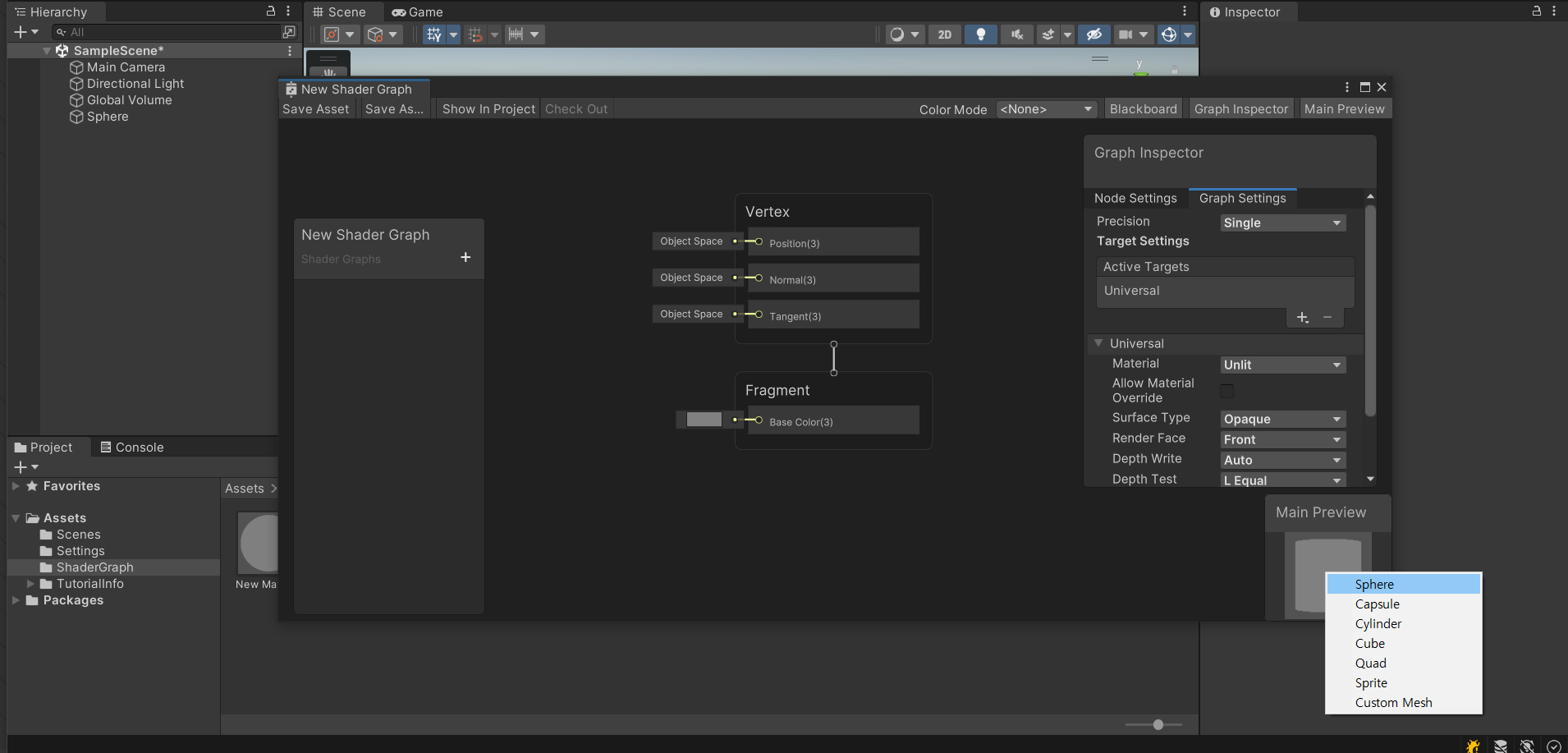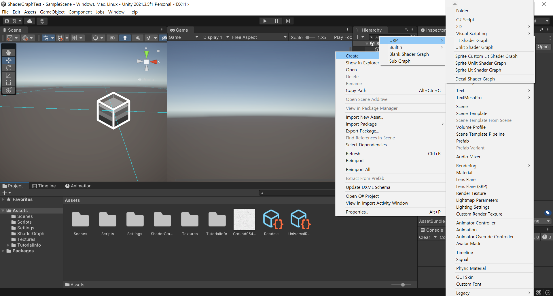 Create - Shader Graph - URP로 들어가 쉐이더 그래프를 생성이 가능하다.
