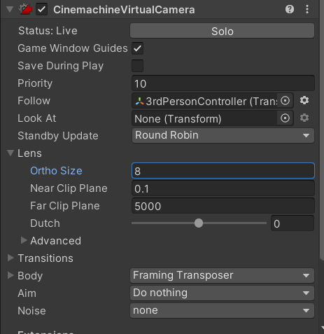 Follow에 따라갈 transform을 드래그 앤 드롭으로 참조하여 따라가게 할 수 있고 그 세부사항들은 Body에서 조정 가능하다.