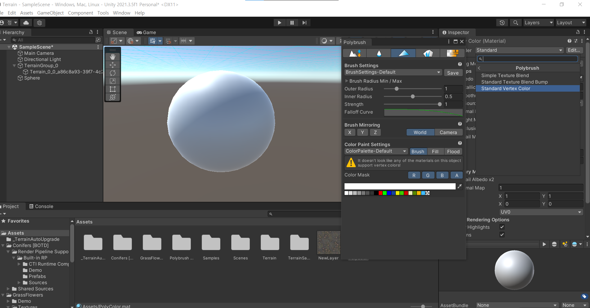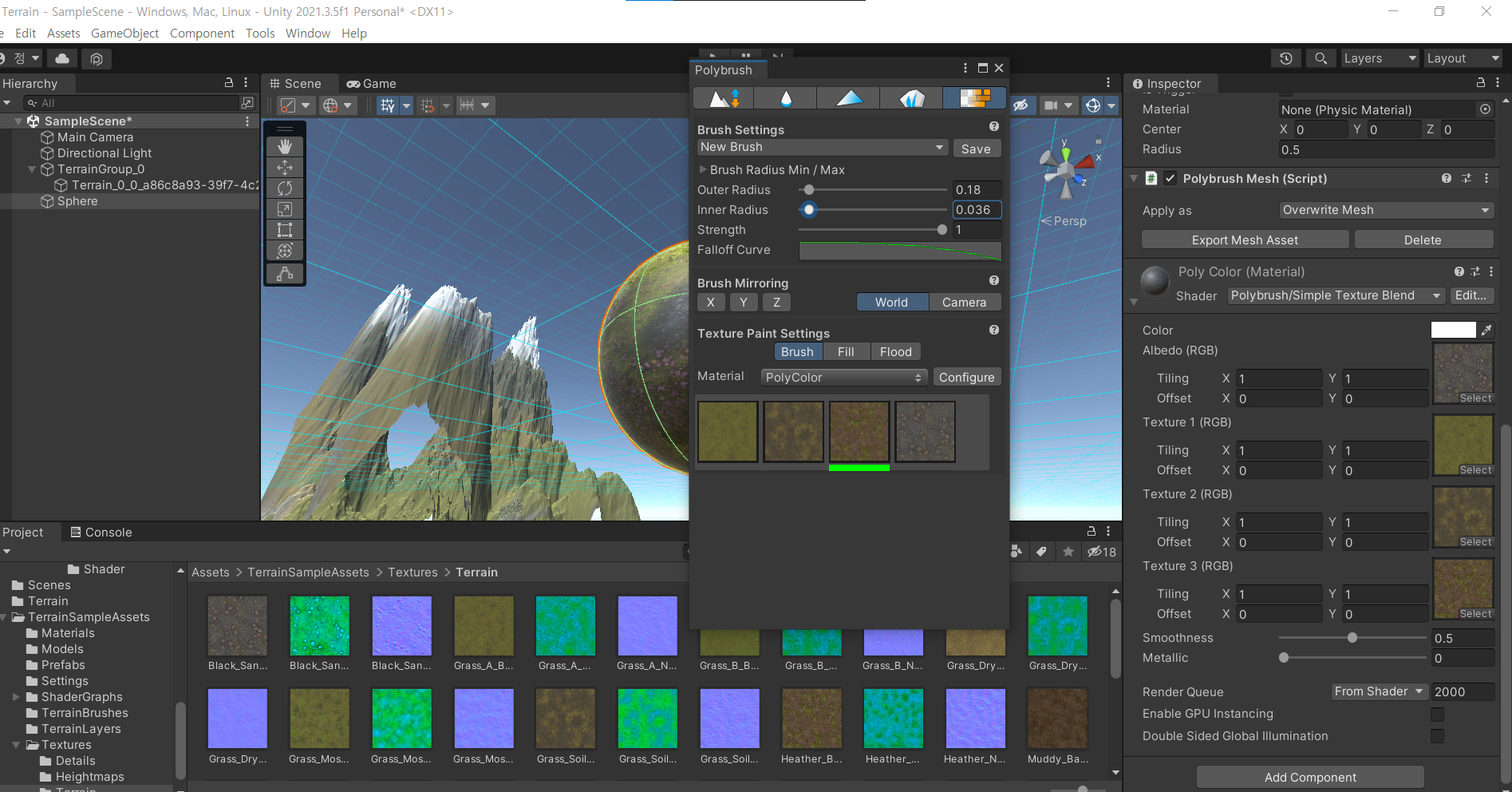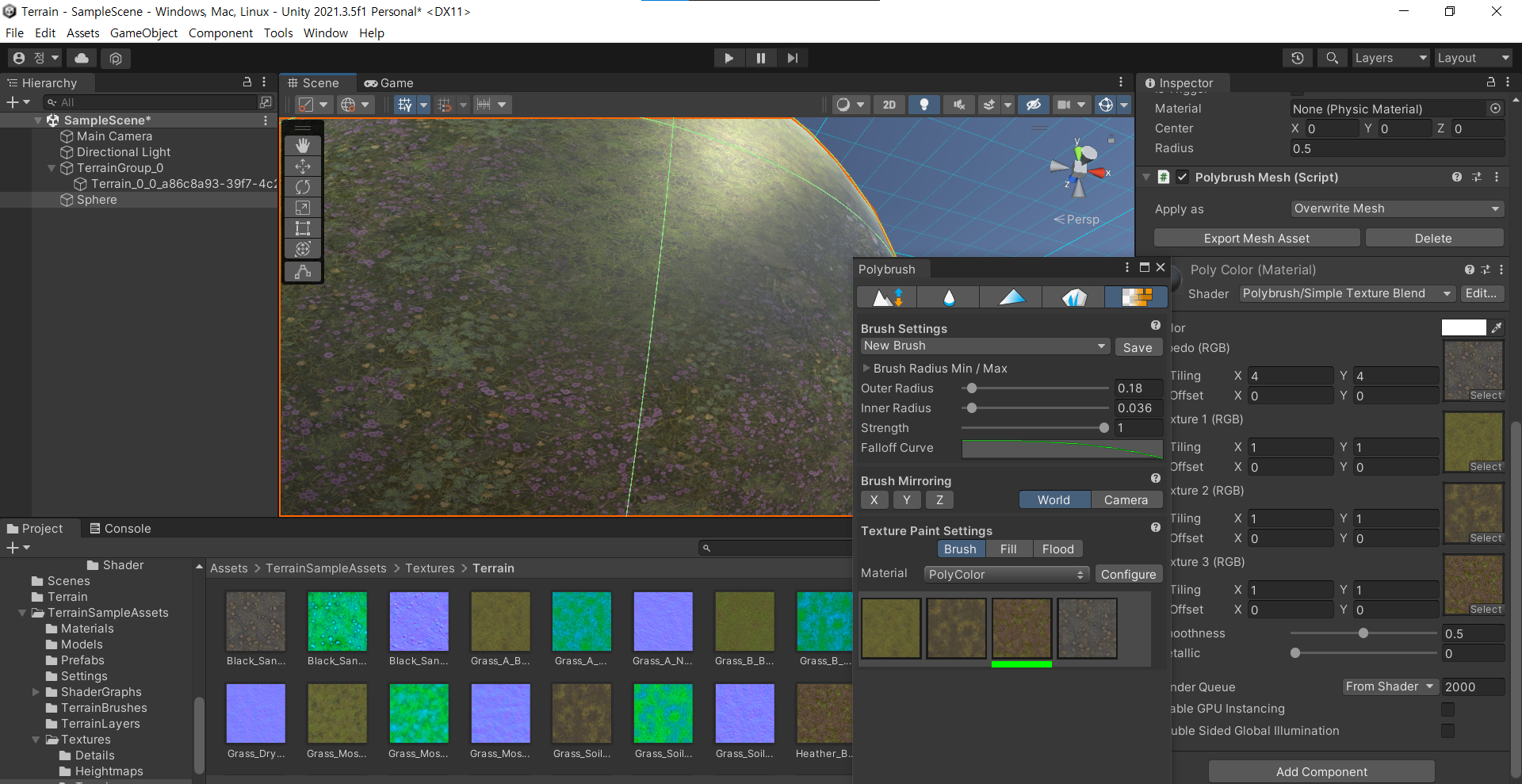 Texture Blend - 쉐이더를 PolyBrush Blend로 하고 Textuure를 입힌다.