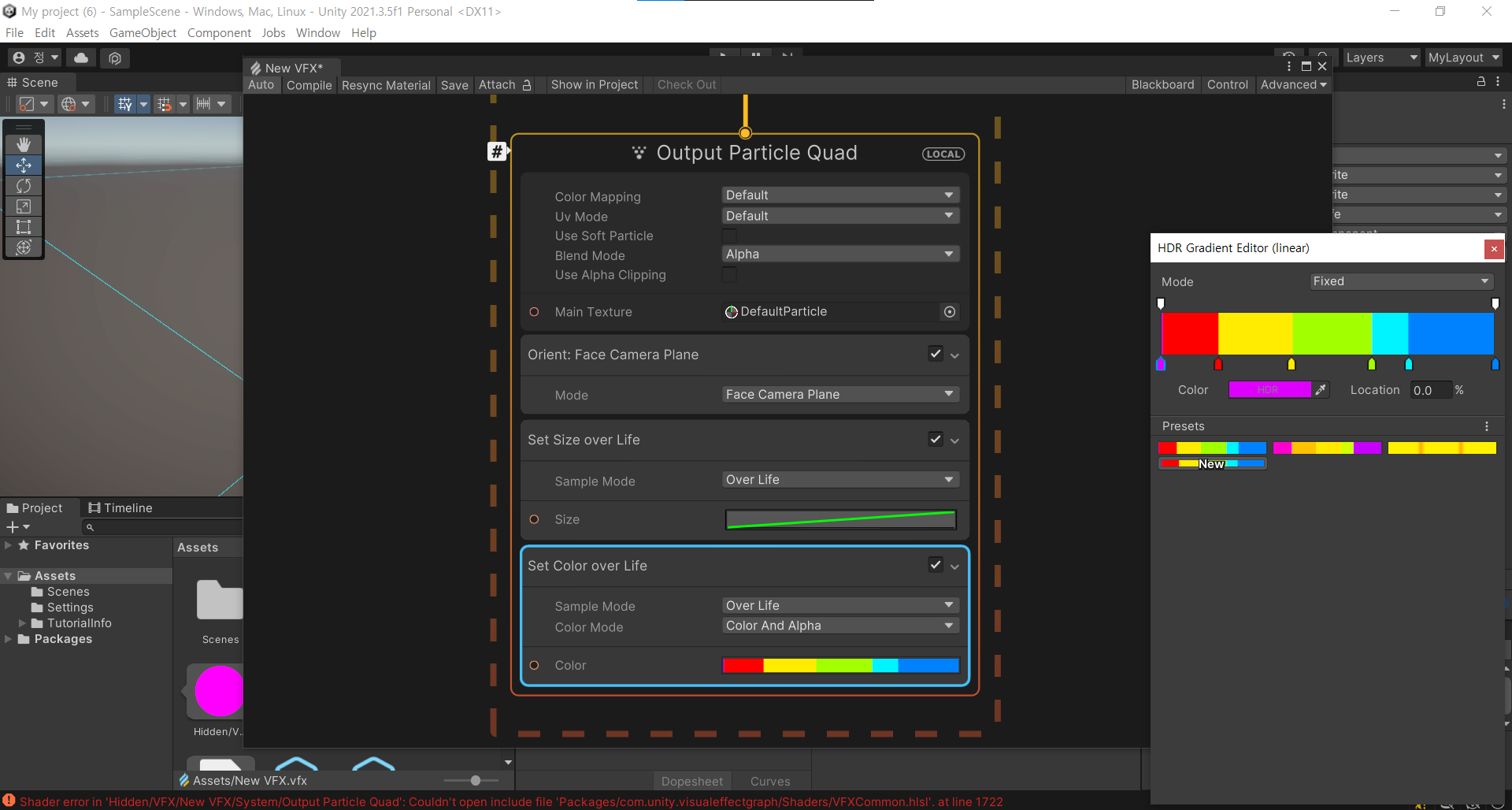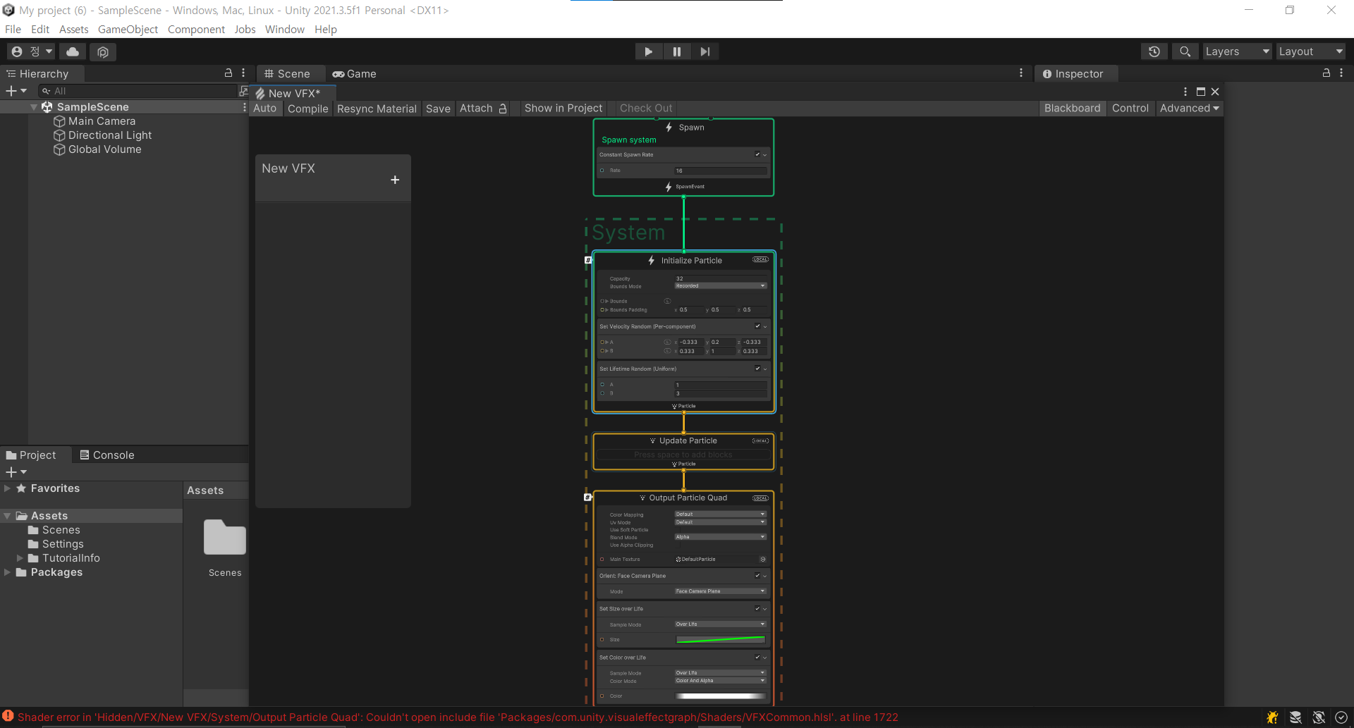 파티클 안나올 시 Rebuild And Save All VFX Graphs를 누르면 복구된다.