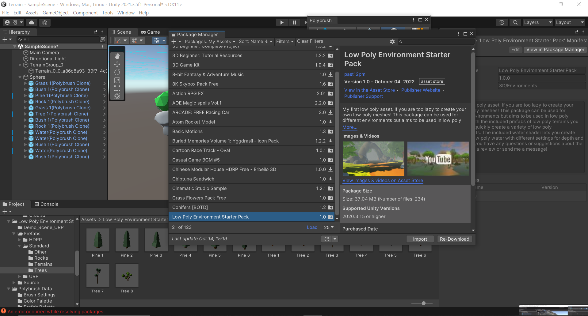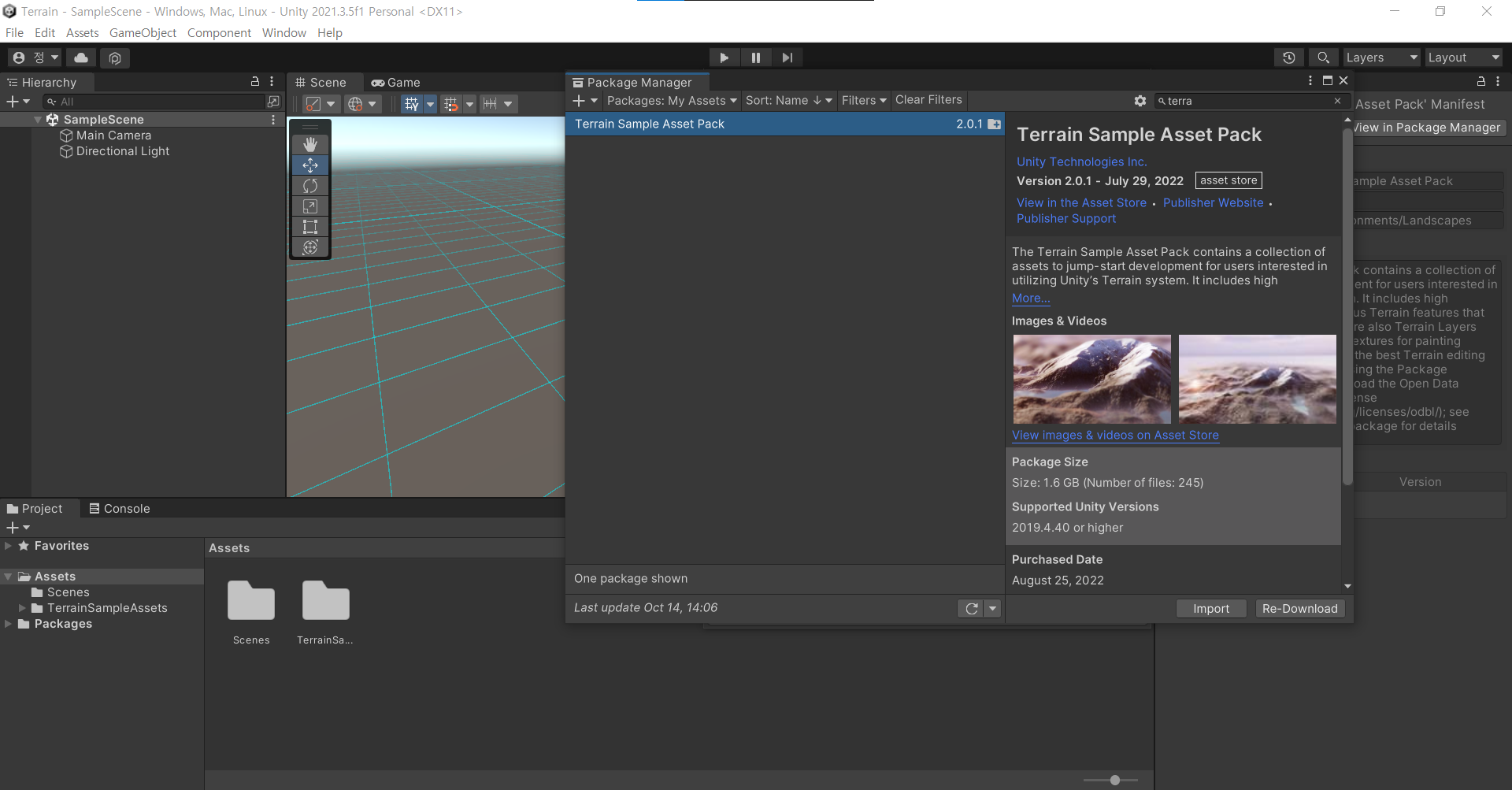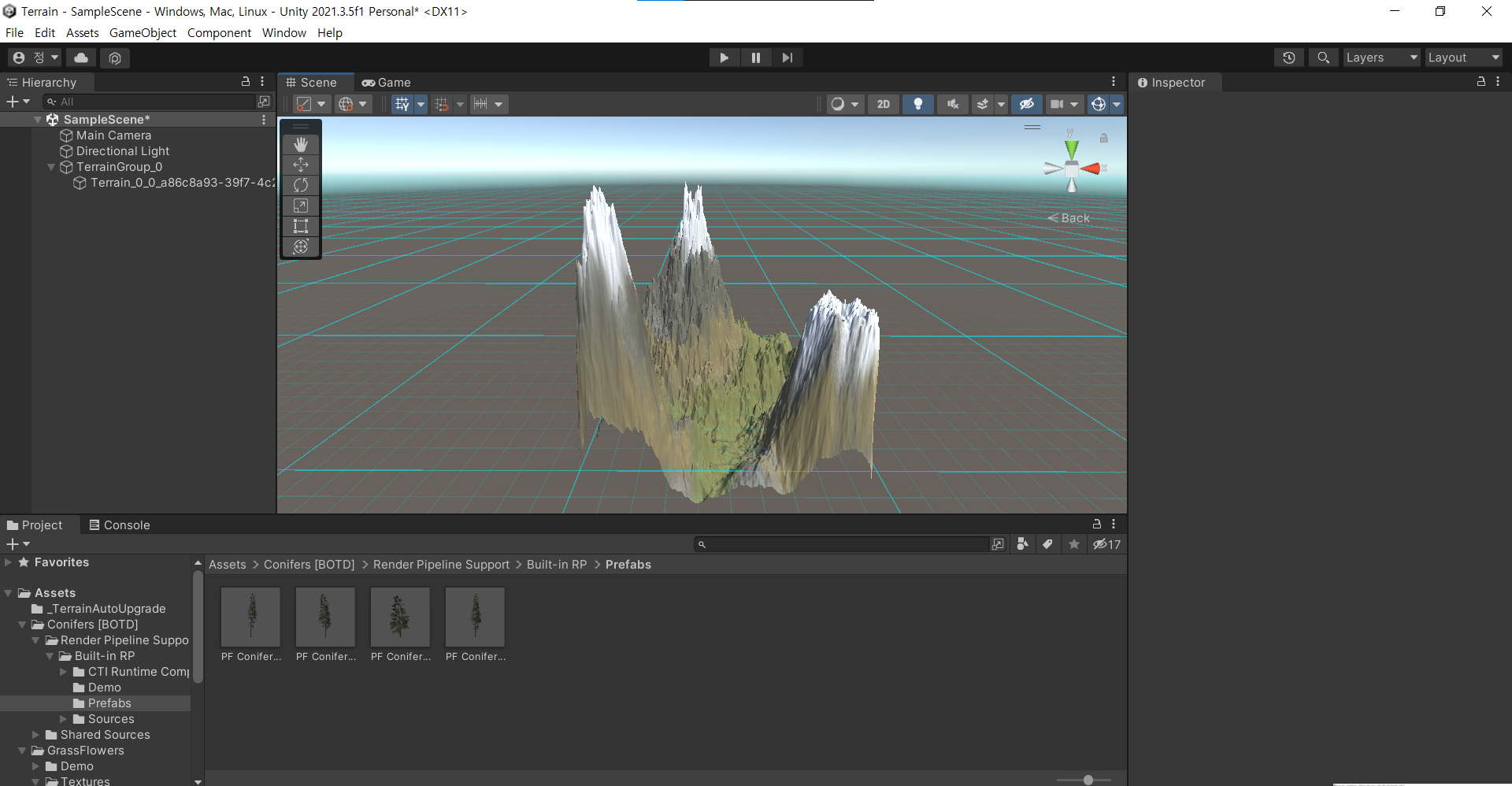 Terrain의 소스가 되는 Terrain 에셋을 다운받아 사용할 수 있다.