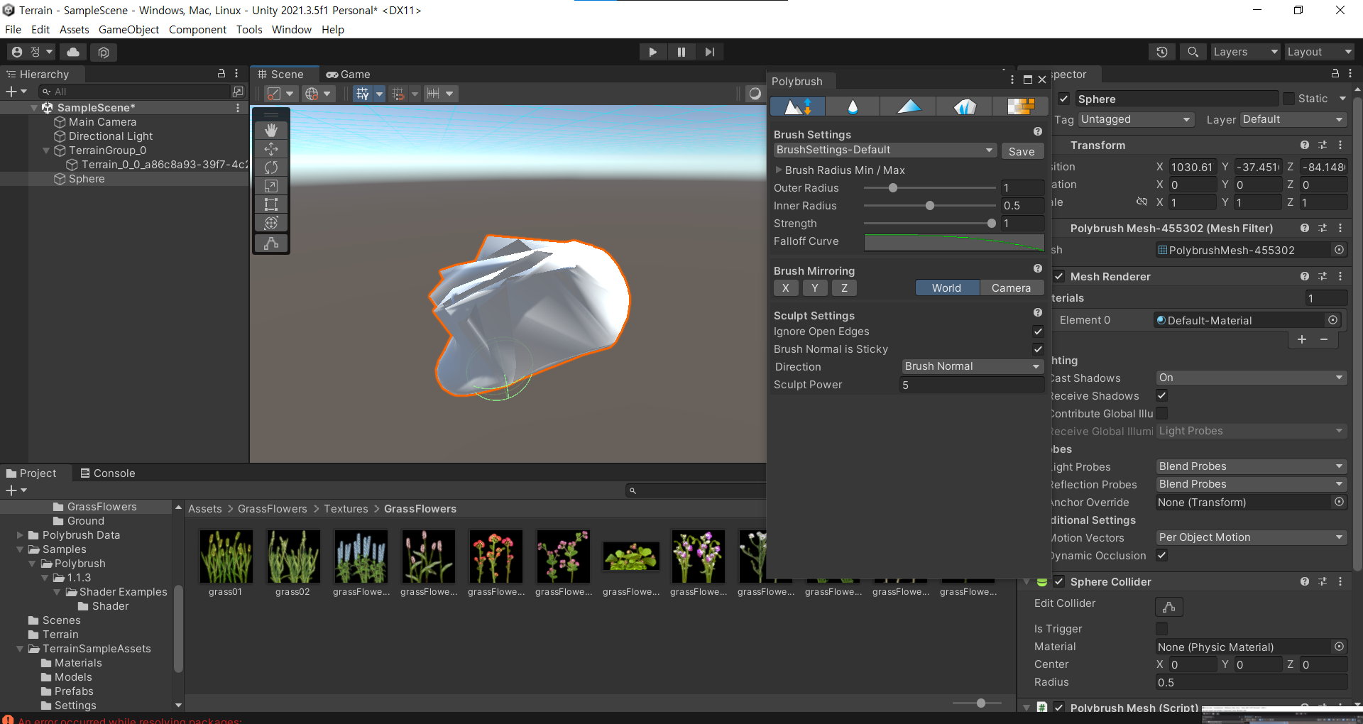 Creating and editing Terrains Terrain The Unity Editor includes a built-in set of TerrainThe landscape in your scene. A Terrain GameObject adds a large flat plane to your scene and you can use the Terrain’s Inspector window to create a detailed landscape