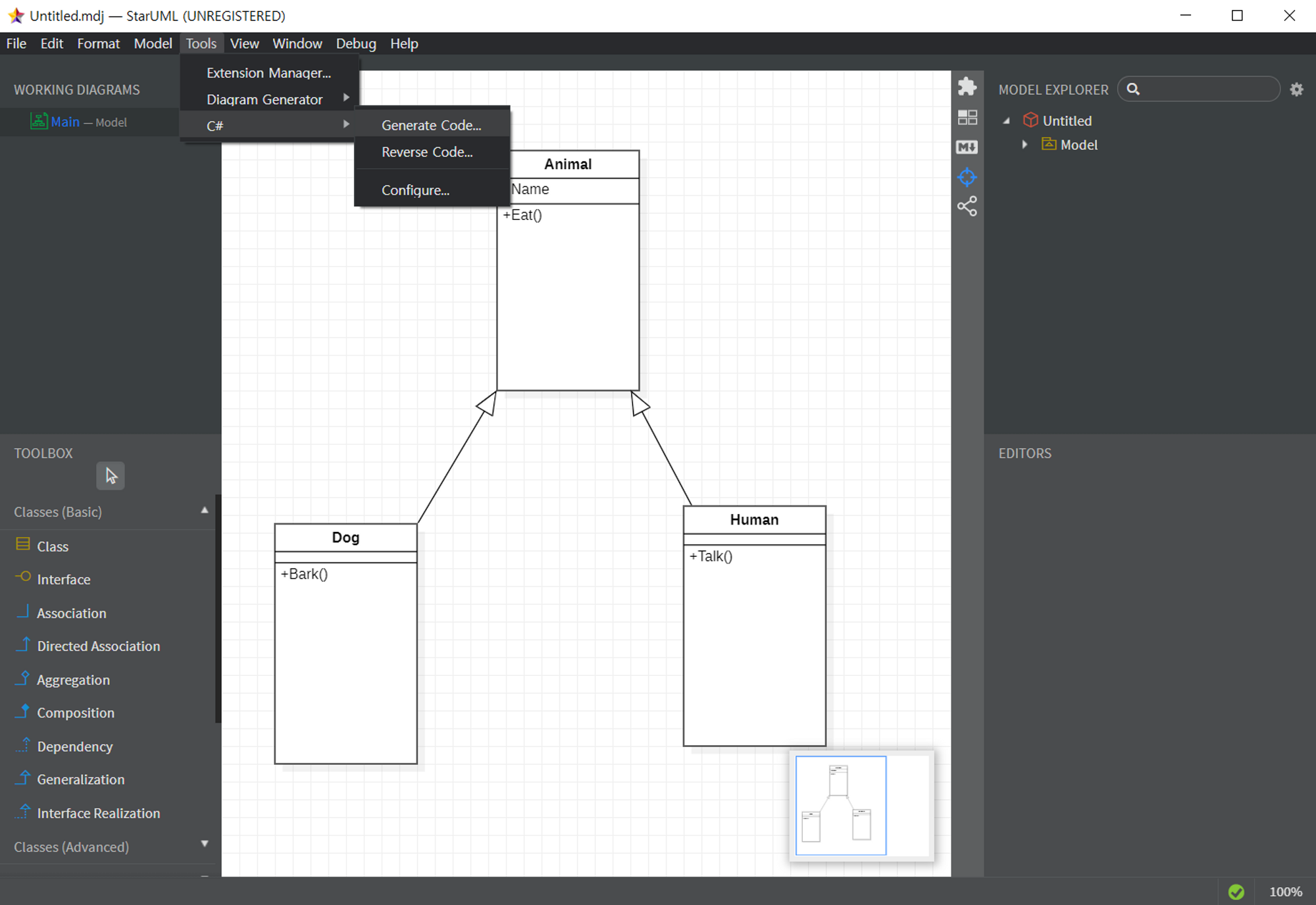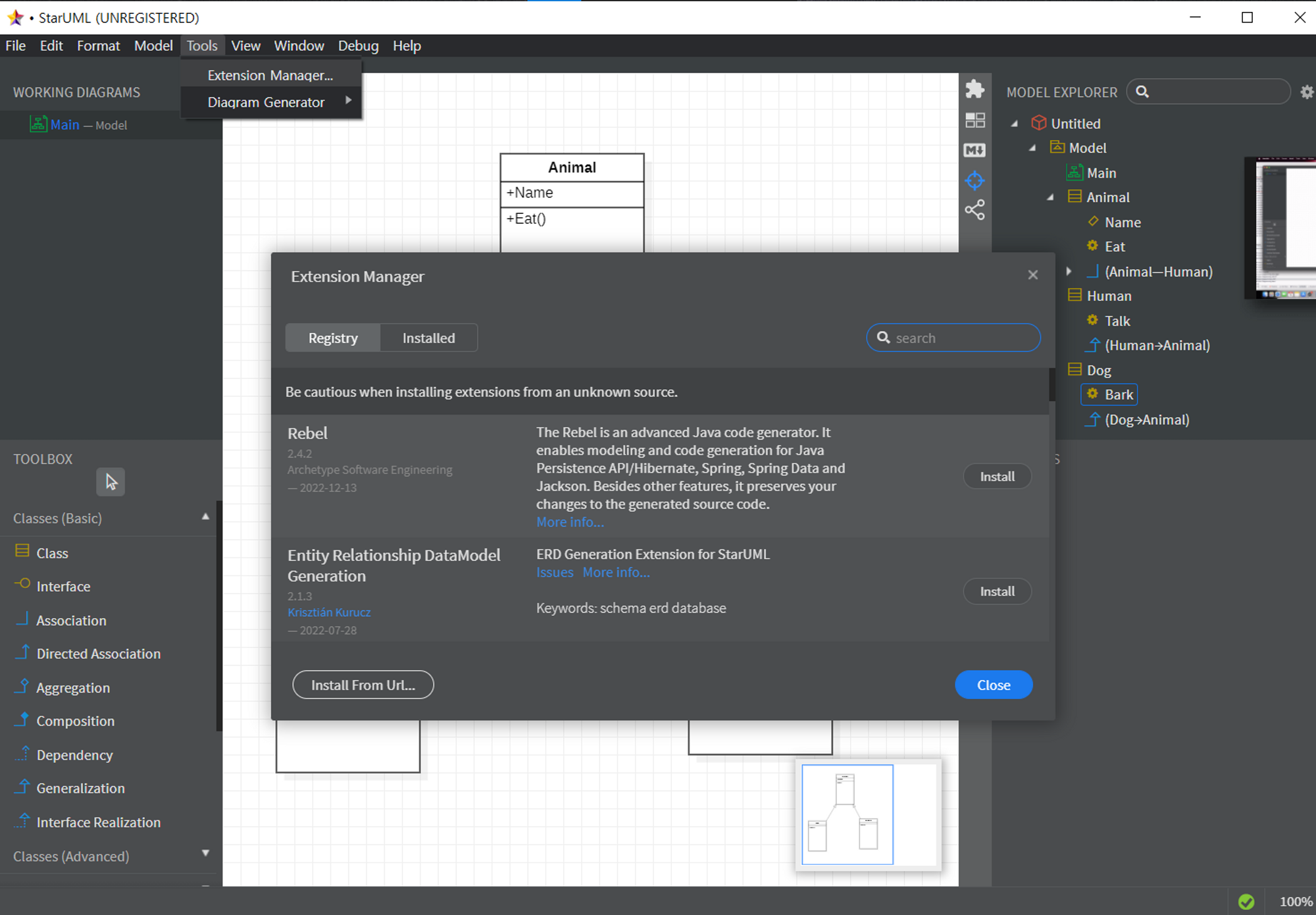 스타 UML의 Extension을 사용하면 다이어그램을 코드로 코드를 다이어그램으로 만들 수 있다.