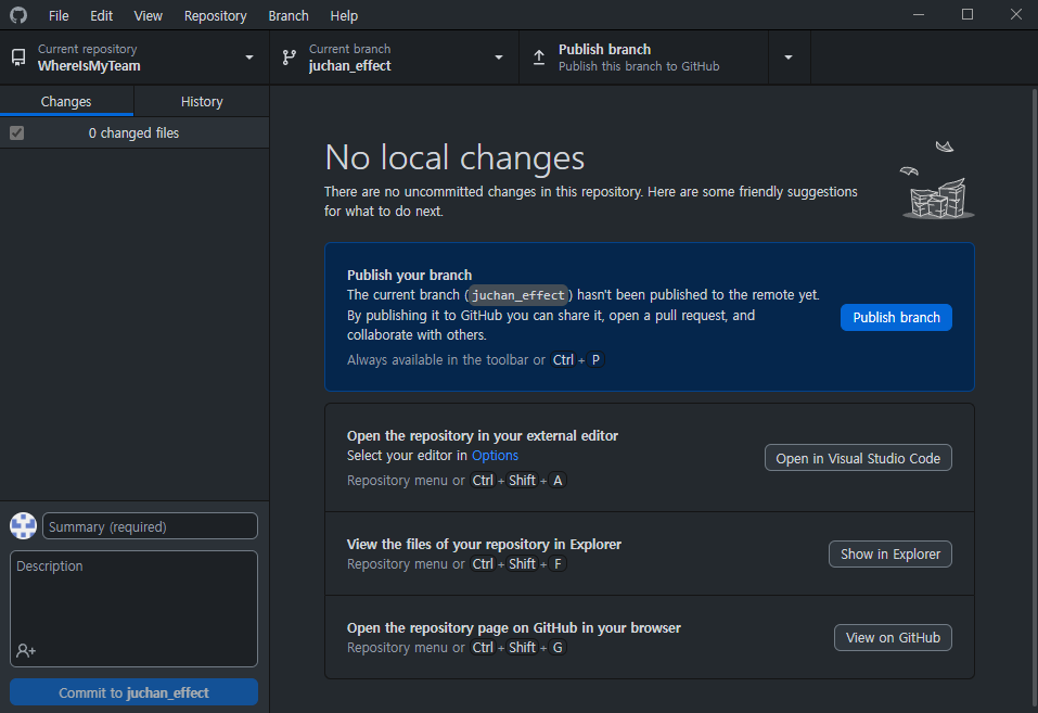 Git 작업을 GUI상에서 할 수 있는 깃 데스크탑 사용법을 배웠다.